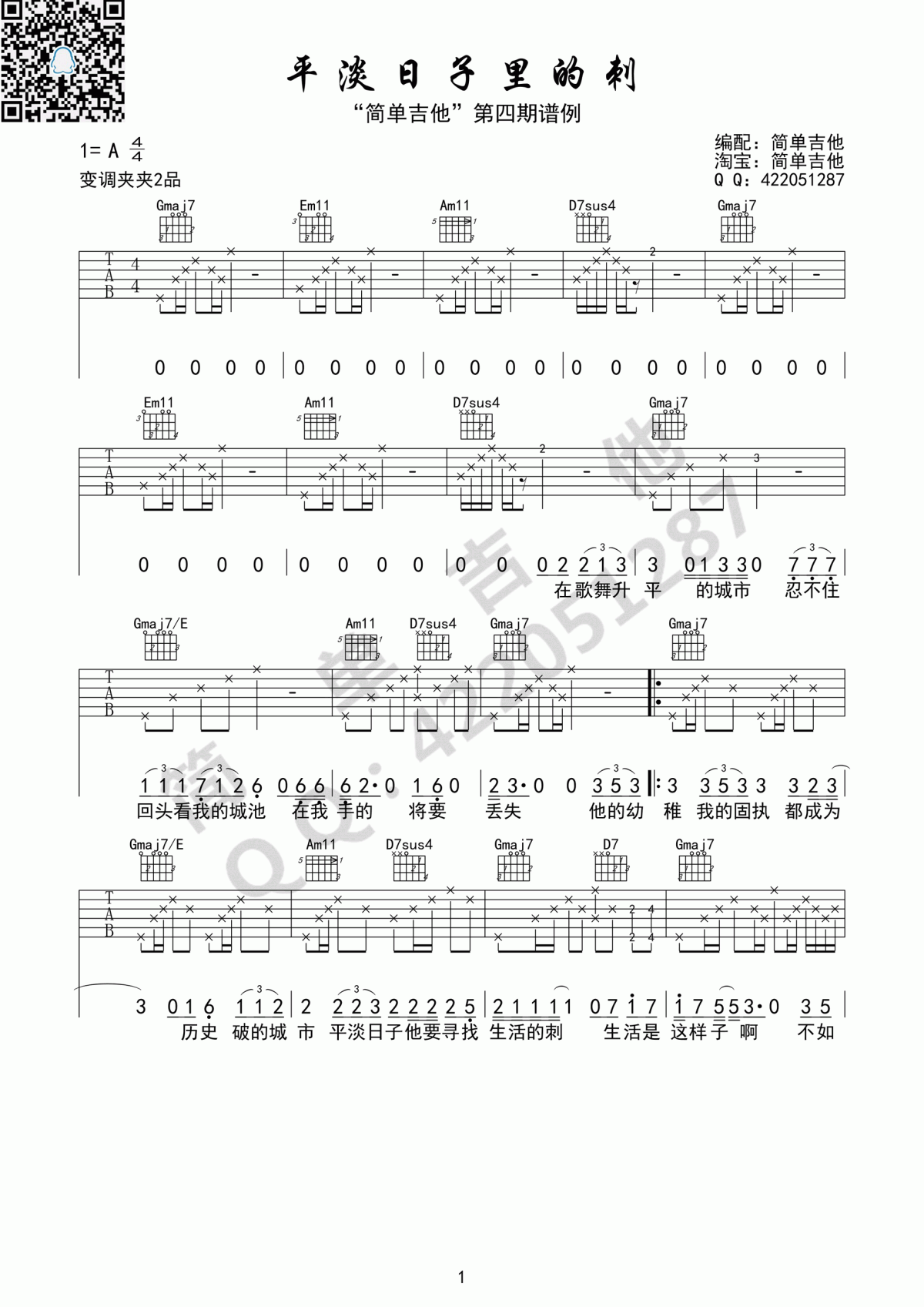 《宋冬野《平淡日子里的刺吉他谱》》内容来自于互联网,不能保证内容的准确性与完整性,仅供学习交流欣赏,请勿用于其它用途,内容版权归原作者及来源网站所有,如有侵犯到您的权益请来信告知,我们将及时删除。
