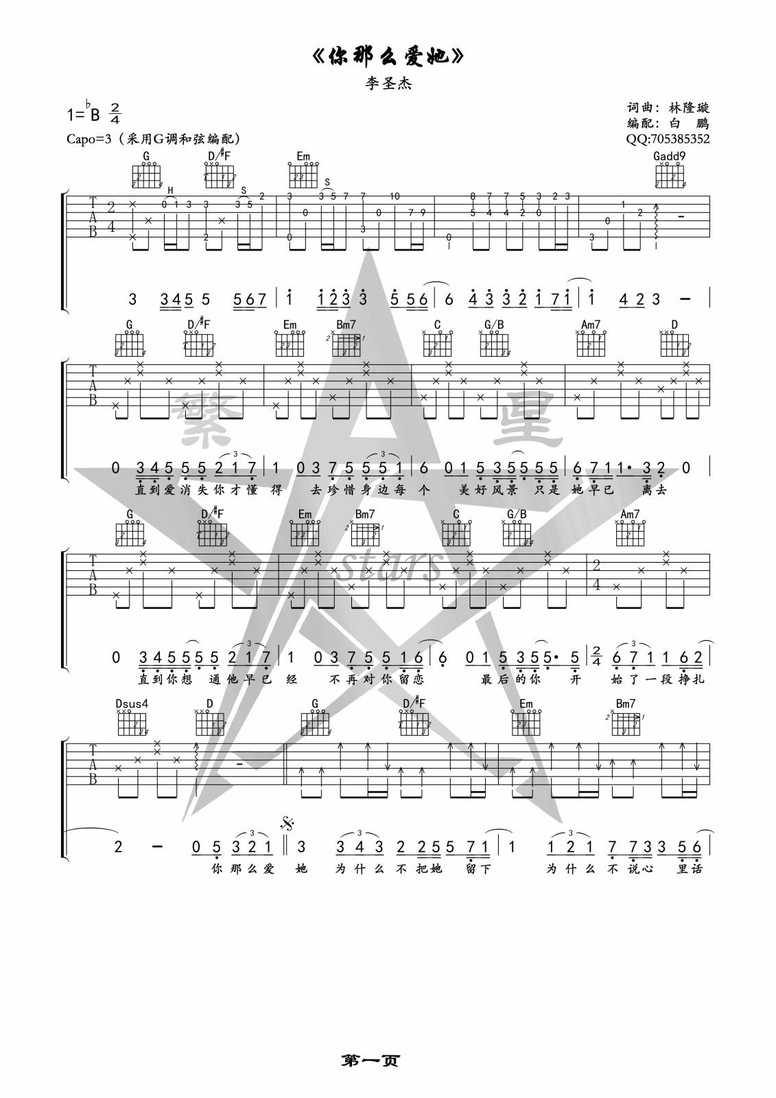 《李圣杰《你那么爱她吉他谱》》内容来自于互联网,不能保证内容的准确性与完整性,仅供学习交流欣赏,请勿用于其它用途,内容版权归原作者及来源网站所有,如有侵犯到您的权益请来信告知,我们将及时删除。
