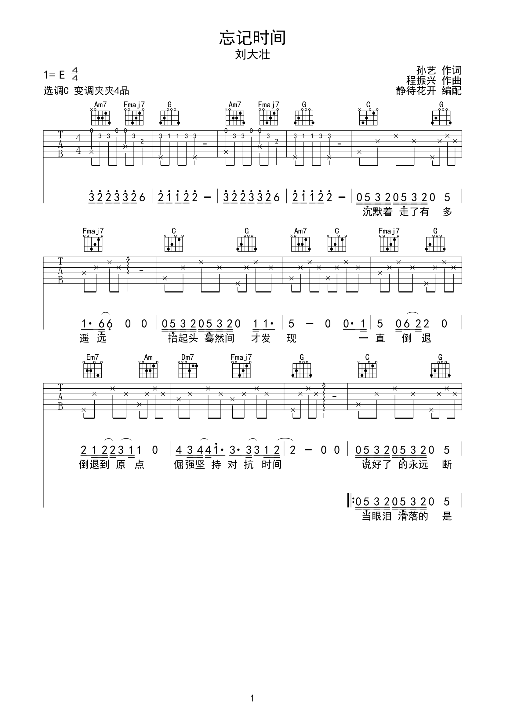 大壮《忘记时间吉他谱》(C调)