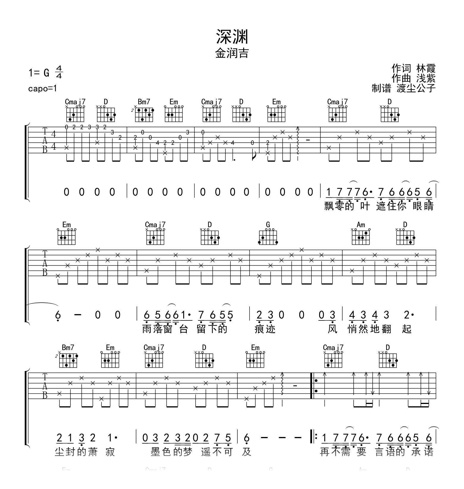 《金润吉《深渊吉他谱》(G调)》内容来自于互联网,不能保证内容的准确性与完整性,仅供学习交流欣赏,请勿用于其它用途,内容版权归原作者及来源网站所有,如有侵犯到您的权益请来信告知,我们将及时删除。