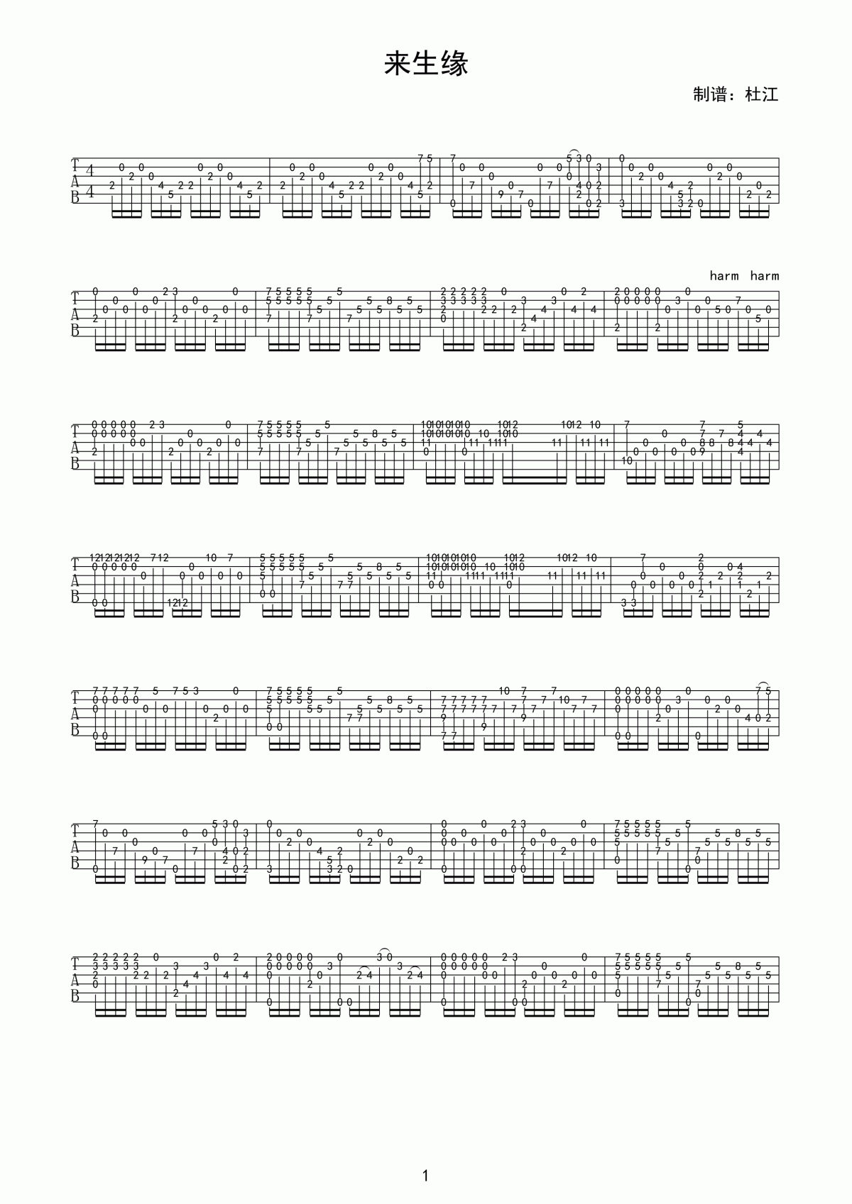 《刘德华《来生缘指弹吉他谱》》内容来自于互联网,不能保证内容的准确性与完整性,仅供学习交流欣赏,请勿用于其它用途,内容版权归原作者及来源网站所有,如有侵犯到您的权益请来信告知,我们将及时删除。