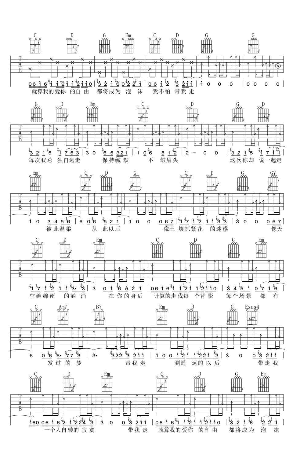 《沈以诚《带我走吉他谱》(G调)》内容来自于互联网,不能保证内容的准确性与完整性,仅供学习交流欣赏,请勿用于其它用途,内容版权归原作者及来源网站所有,如有侵犯到您的权益请来信告知,我们将及时删除。