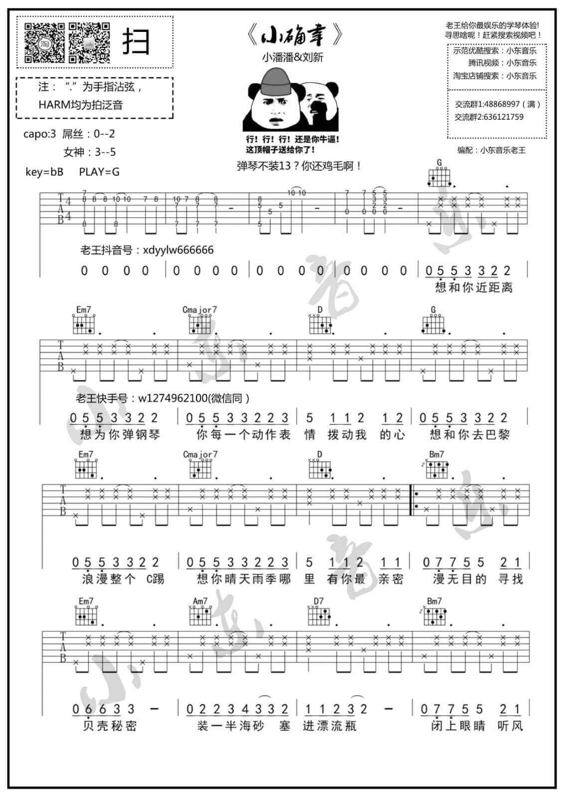 《刘心《小确幸吉他谱》(G调)》内容来自于互联网,不能保证内容的准确性与完整性,仅供学习交流欣赏,请勿用于其它用途,内容版权归原作者及来源网站所有,如有侵犯到您的权益请来信告知,我们将及时删除。