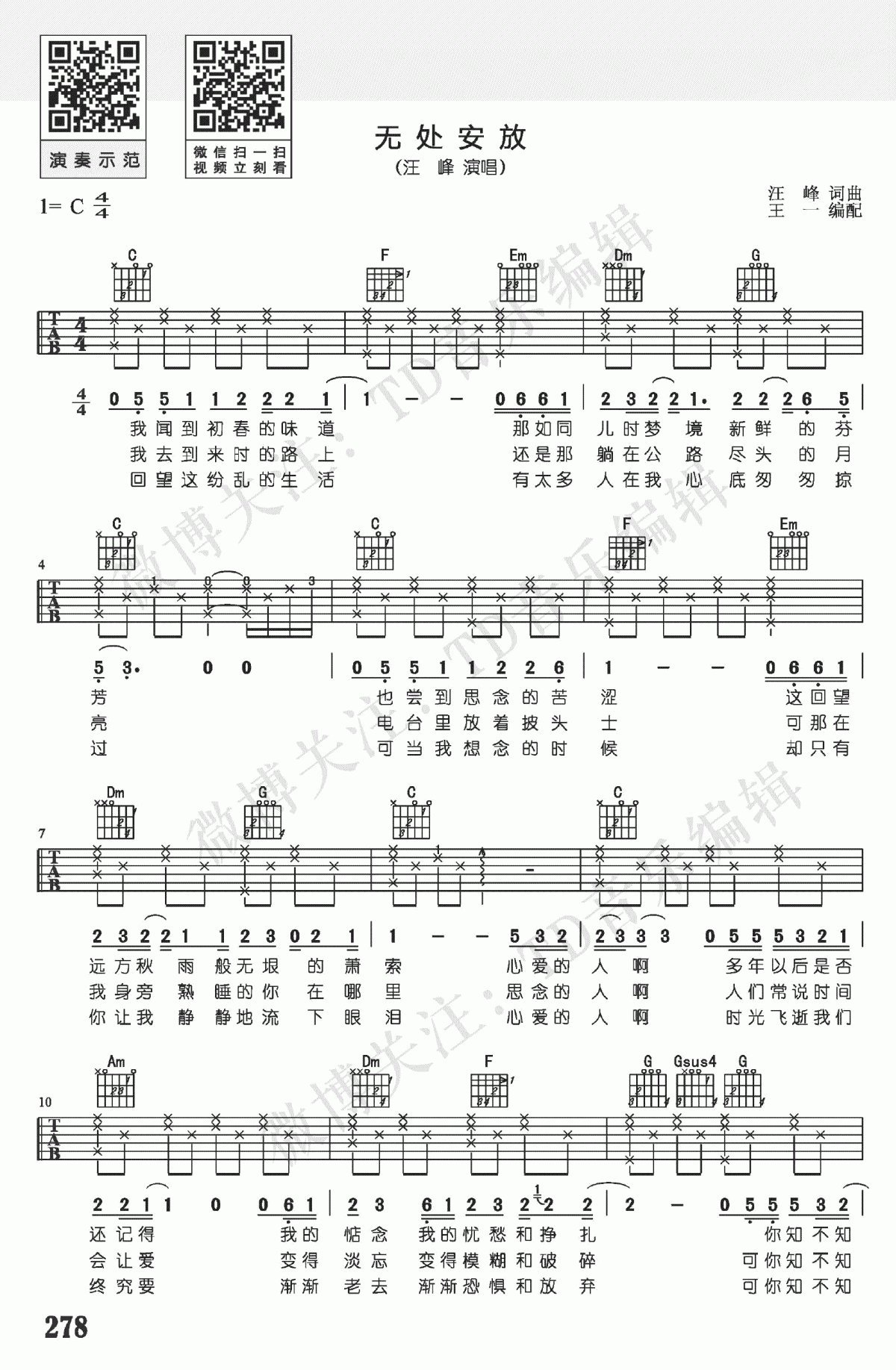 《汪峰《无处安放吉他谱》(C调)》内容来自于互联网,不能保证内容的准确性与完整性,仅供学习交流欣赏,请勿用于其它用途,内容版权归原作者及来源网站所有,如有侵犯到您的权益请来信告知,我们将及时删除。