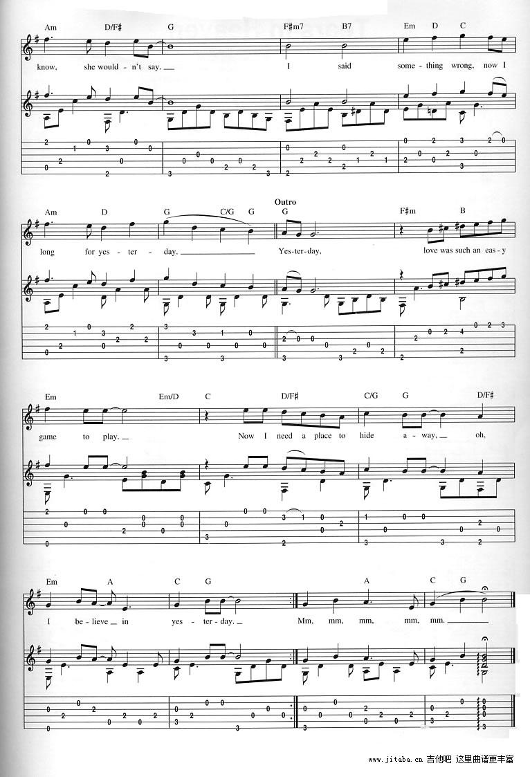 《《Yesterday指弹吉他谱》》内容来自于互联网,不能保证内容的准确性与完整性,仅供学习交流欣赏,请勿用于其它用途,内容版权归原作者及来源网站所有,如有侵犯到您的权益请来信告知,我们将及时删除。