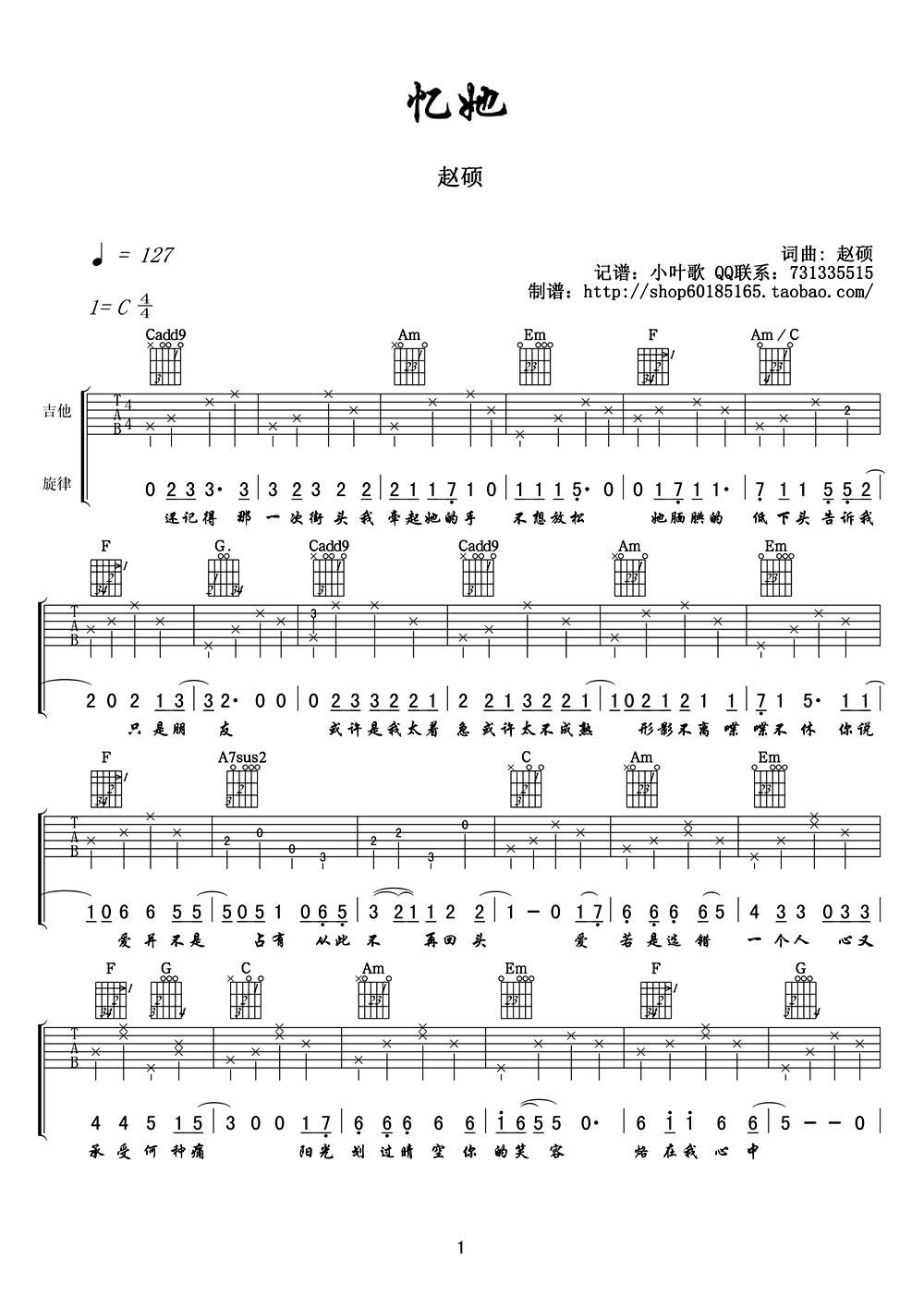 《宁静《赵烁 忆她吉他谱》(C调)》内容来自于互联网,不能保证内容的准确性与完整性,仅供学习交流欣赏,请勿用于其它用途,内容版权归原作者及来源网站所有,如有侵犯到您的权益请来信告知,我们将及时删除。