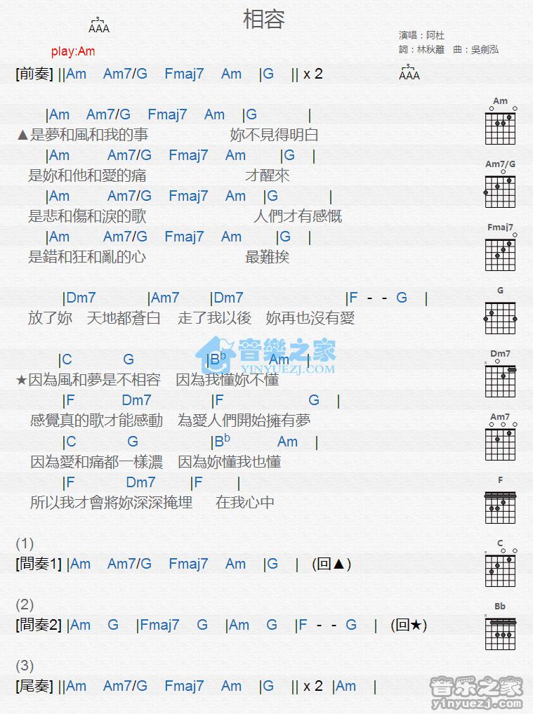 《阿杜《相容吉他谱》(m调)》内容来自于互联网,不能保证内容的准确性与完整性,仅供学习交流欣赏,请勿用于其它用途,内容版权归原作者及来源网站所有,如有侵犯到您的权益请来信告知,我们将及时删除。