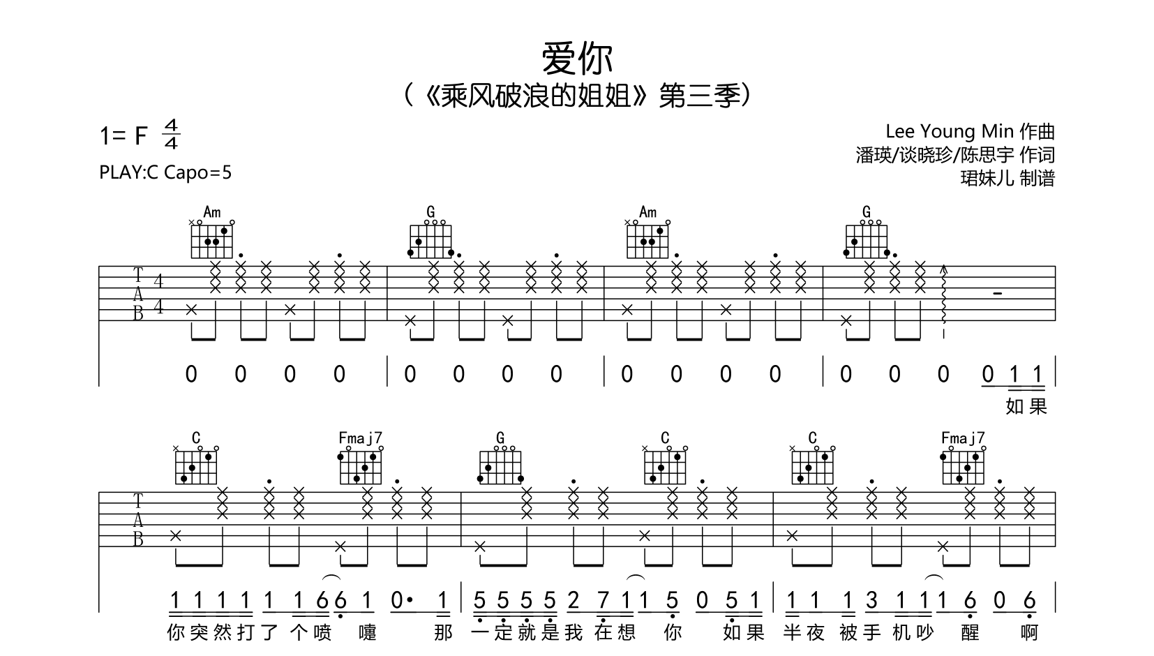 《王心凌《爱你吉他谱》(C调)》内容来自于互联网,不能保证内容的准确性与完整性,仅供学习交流欣赏,请勿用于其它用途,内容版权归原作者及来源网站所有,如有侵犯到您的权益请来信告知,我们将及时删除。