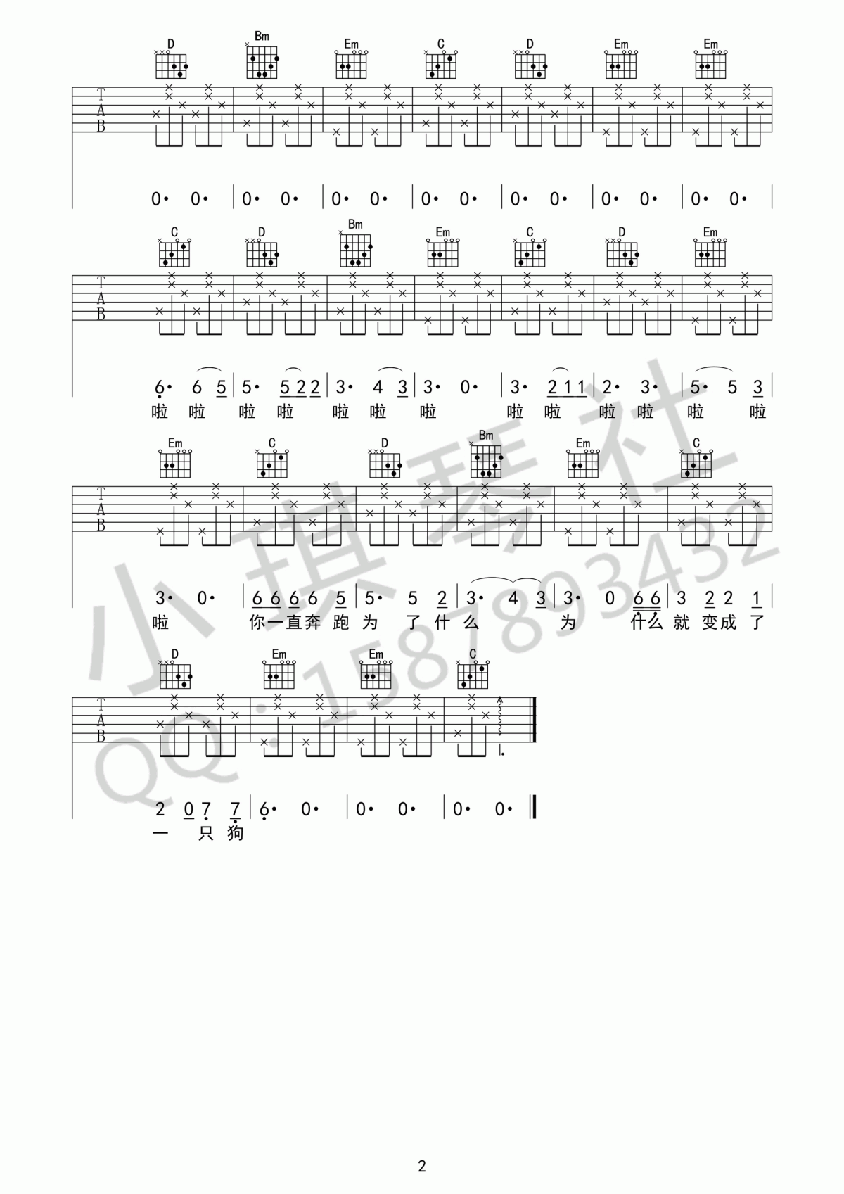 《花粥《一只狗吉他谱》》内容来自于互联网,不能保证内容的准确性与完整性,仅供学习交流欣赏,请勿用于其它用途,内容版权归原作者及来源网站所有,如有侵犯到您的权益请来信告知,我们将及时删除。