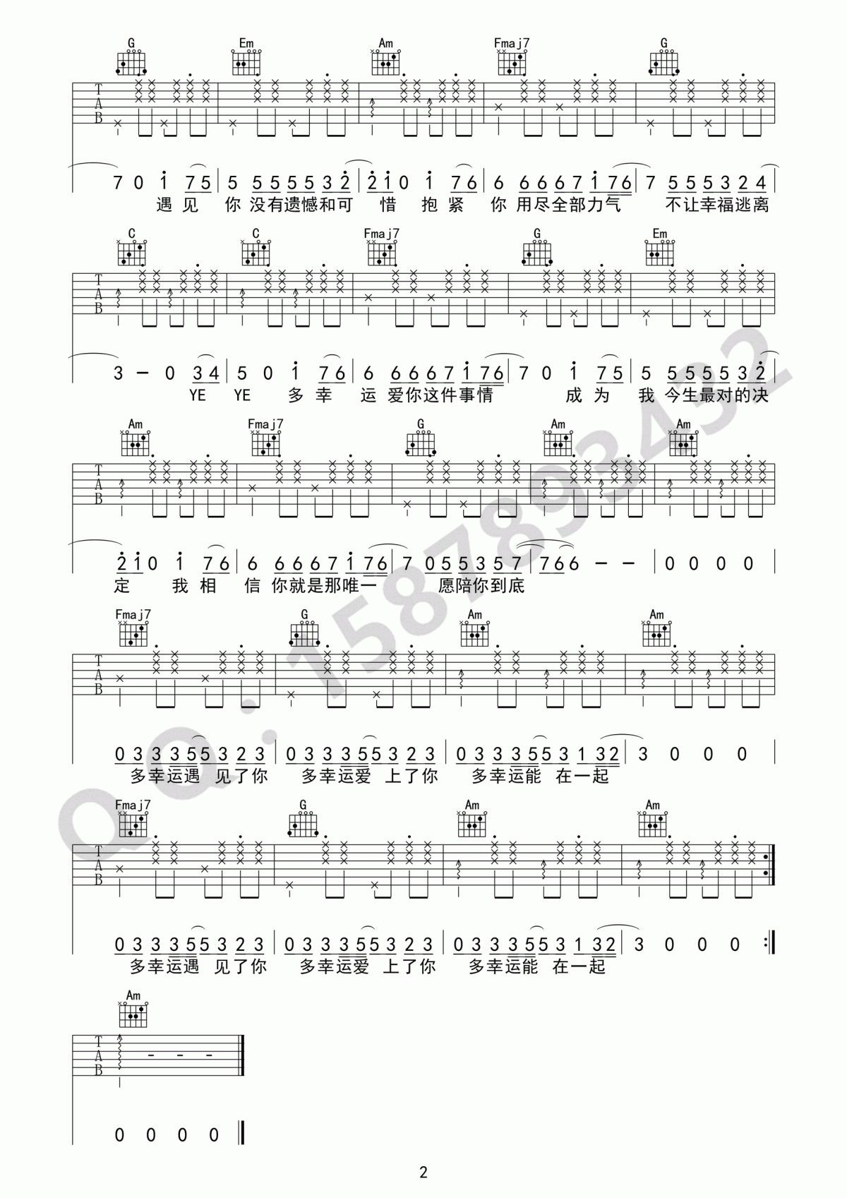 《韩安旭《多幸运吉他谱》》内容来自于互联网,不能保证内容的准确性与完整性,仅供学习交流欣赏,请勿用于其它用途,内容版权归原作者及来源网站所有,如有侵犯到您的权益请来信告知,我们将及时删除。
