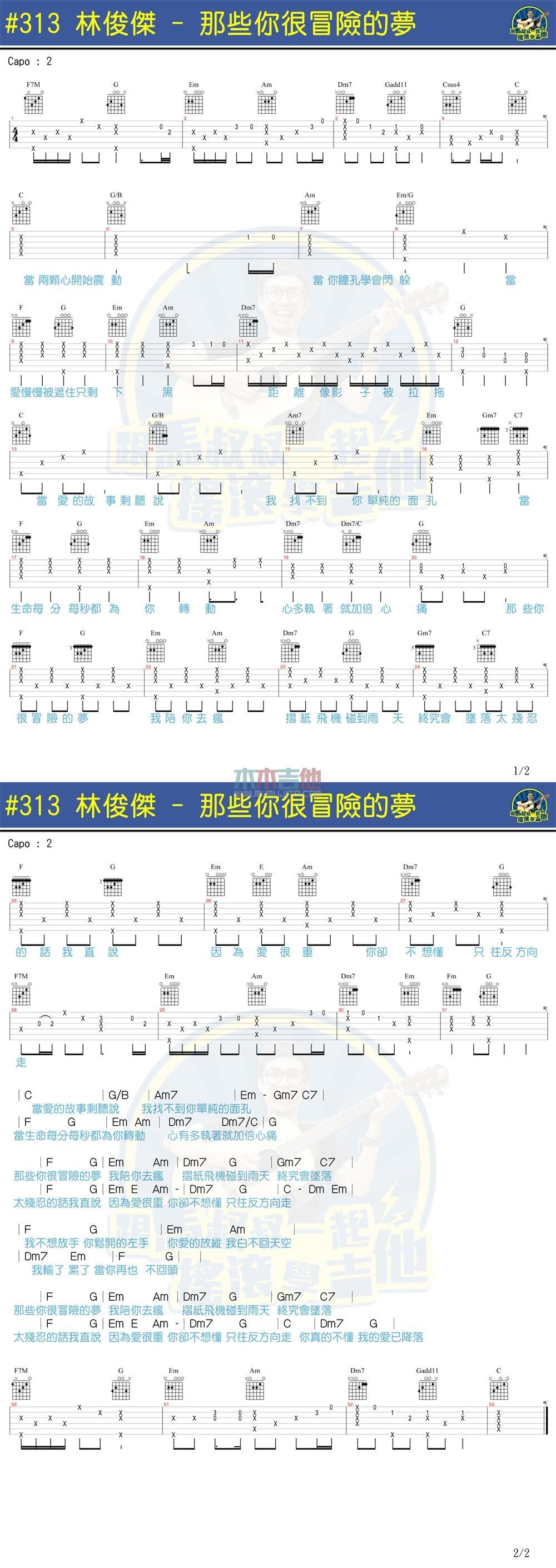 《林俊杰《那些你很冒险的梦吉他谱》》内容来自于互联网,不能保证内容的准确性与完整性,仅供学习交流欣赏,请勿用于其它用途,内容版权归原作者及来源网站所有,如有侵犯到您的权益请来信告知,我们将及时删除。