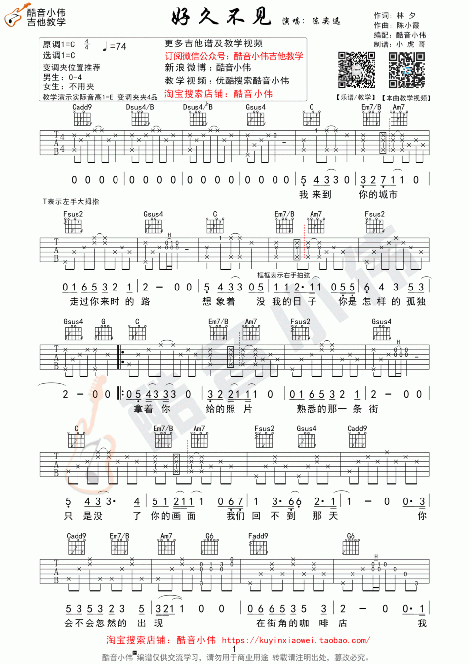 《陈奕迅《好久不见吉他谱》(C调)》内容来自于互联网,不能保证内容的准确性与完整性,仅供学习交流欣赏,请勿用于其它用途,内容版权归原作者及来源网站所有,如有侵犯到您的权益请来信告知,我们将及时删除。