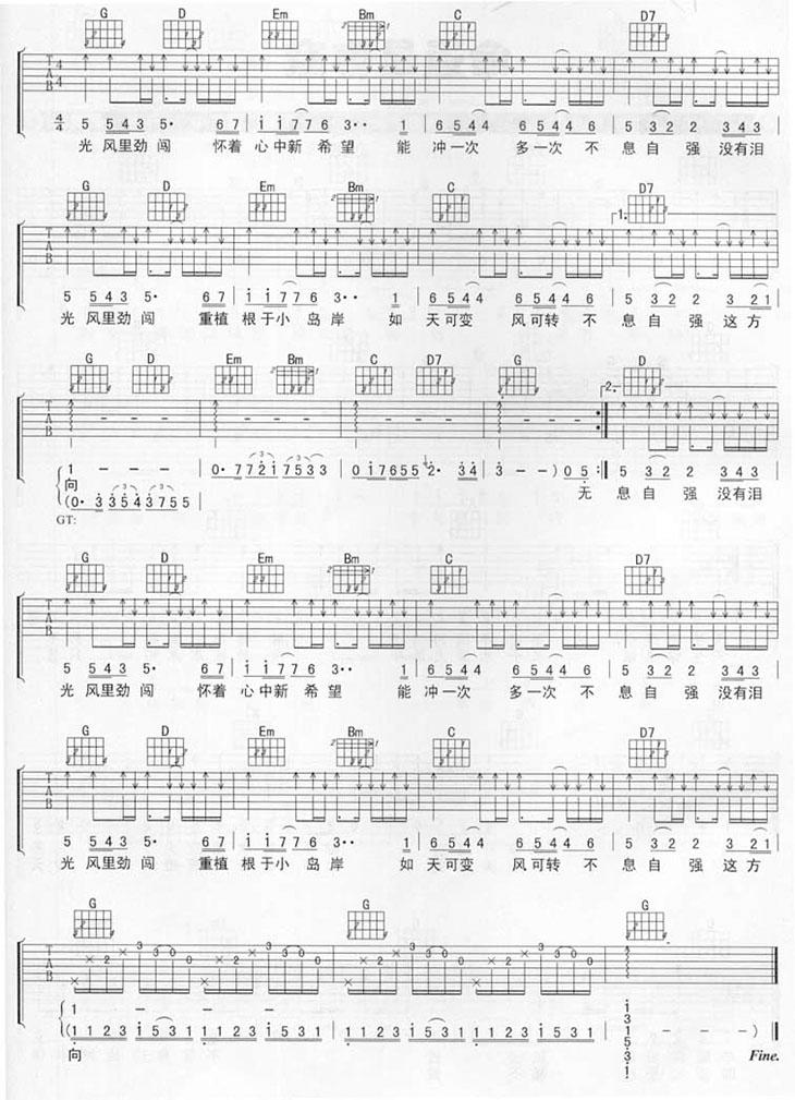 这首粤语歌曲是Beyond演唱的,名为《无悔这一生》。歌曲以G调吉他谱为基础,通过精心编配指法,呈现出深沉而激励人心的旋律。谱中六行谱和两张照片详细展示了演奏要点,为喜爱音乐的人提供了学习的机会。歌曲表达了歌手对自己人生的深刻感悟,坚定地表示不留遗憾。歌词中“