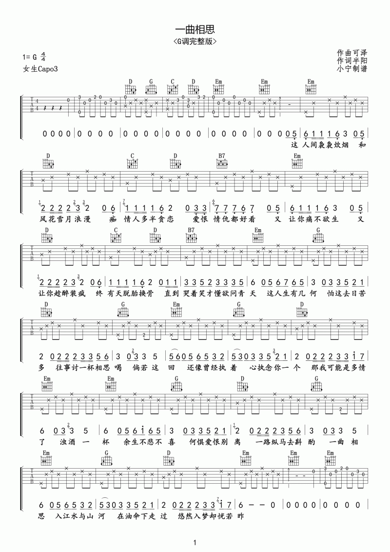 《半阳《一曲相思吉他谱》(G调)》内容来自于互联网,不能保证内容的准确性与完整性,仅供学习交流欣赏,请勿用于其它用途,内容版权归原作者及来源网站所有,如有侵犯到您的权益请来信告知,我们将及时删除。