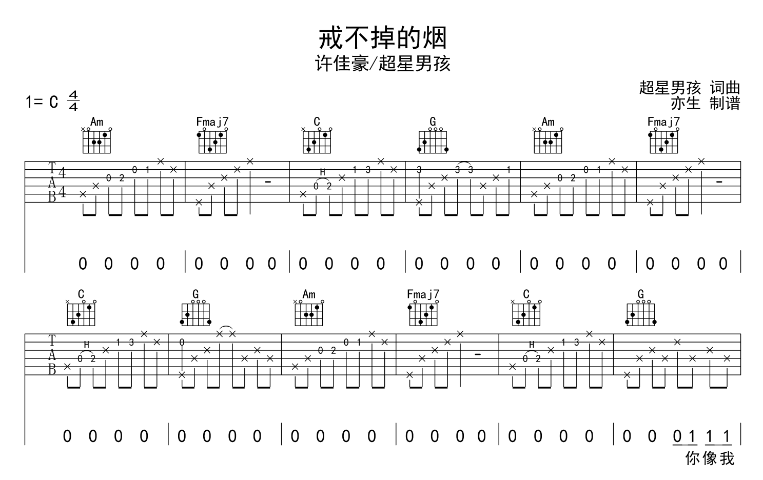 超星男孩《戒不掉的烟吉他谱》(C调)