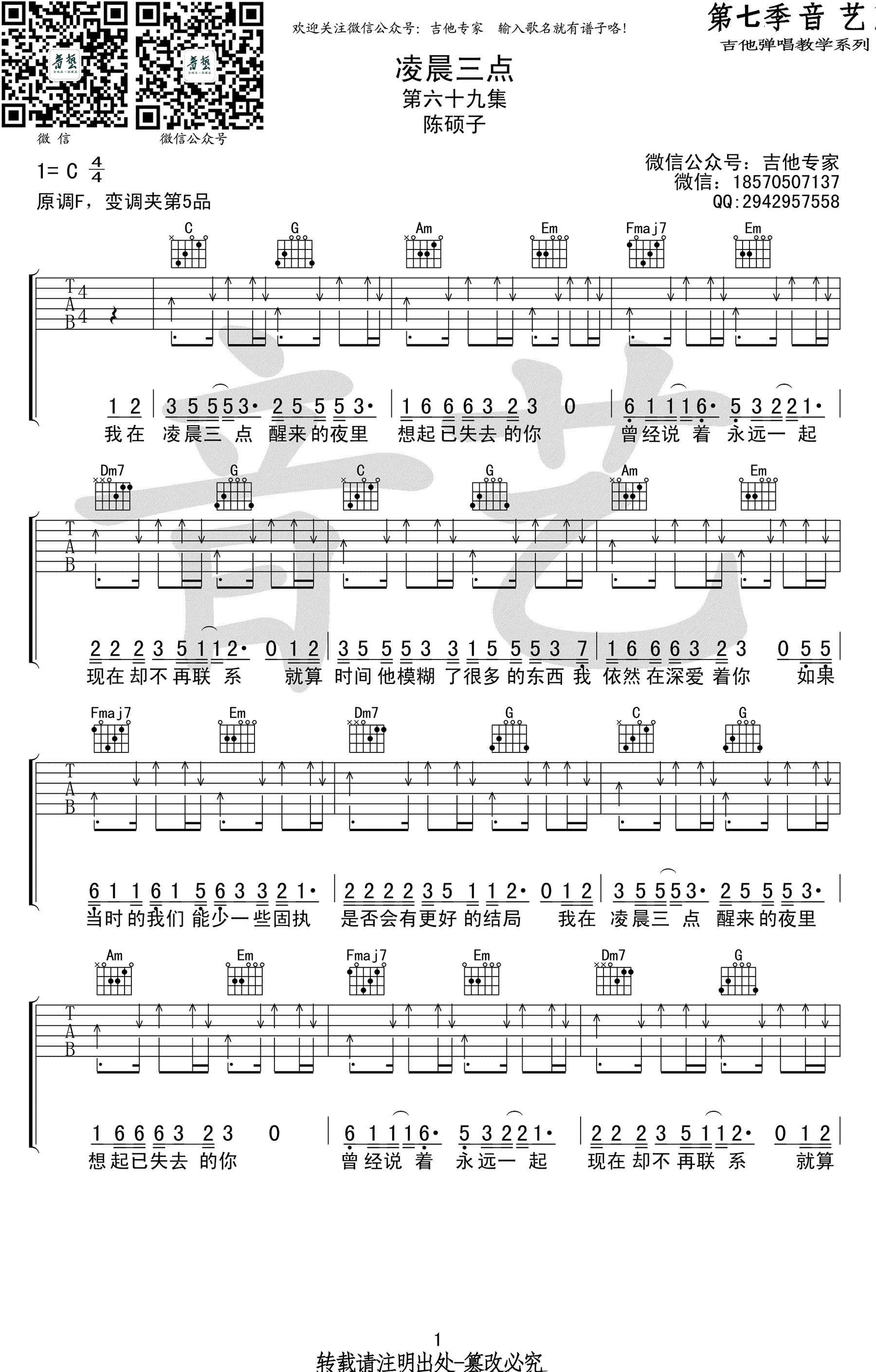 《陈硕子《凌晨三点吉他谱》(C调)》内容来自于互联网,不能保证内容的准确性与完整性,仅供学习交流欣赏,请勿用于其它用途,内容版权归原作者及来源网站所有,如有侵犯到您的权益请来信告知,我们将及时删除。