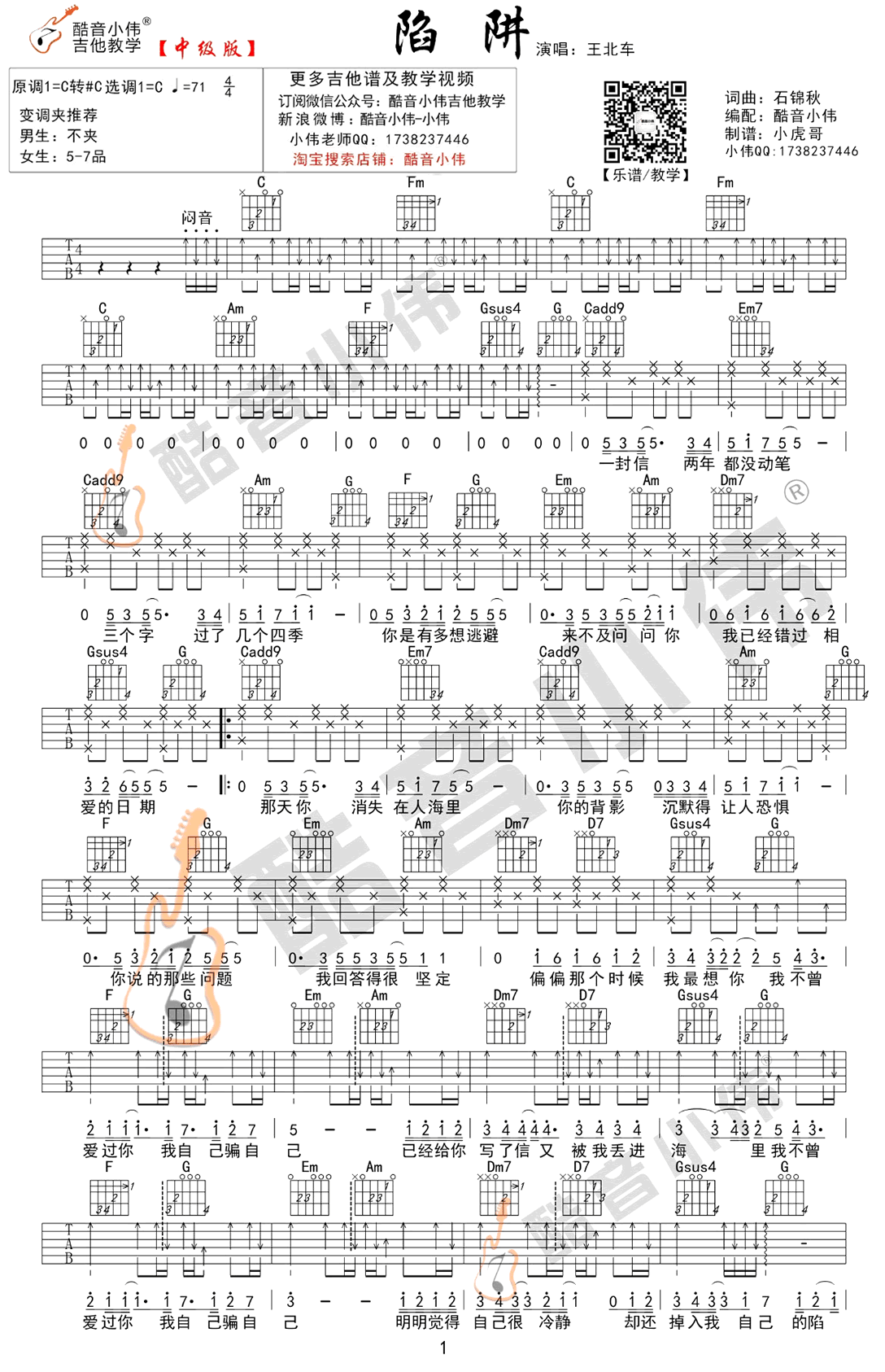 《王北车《陷阱吉他谱》(C调)》内容来自于互联网,不能保证内容的准确性与完整性,仅供学习交流欣赏,请勿用于其它用途,内容版权归原作者及来源网站所有,如有侵犯到您的权益请来信告知,我们将及时删除。