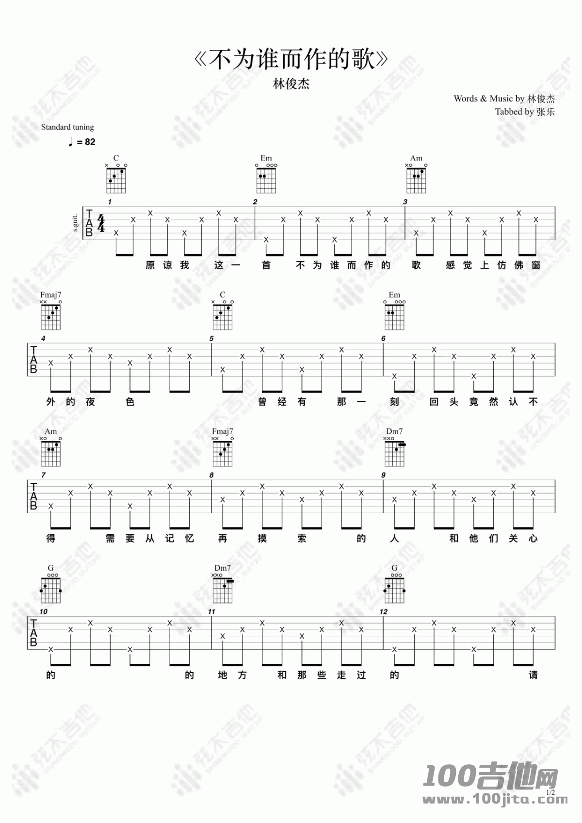 《林俊杰《不为谁而作的歌吉他谱》(C调)》内容来自于互联网,不能保证内容的准确性与完整性,仅供学习交流欣赏,请勿用于其它用途,内容版权归原作者及来源网站所有,如有侵犯到您的权益请来信告知,我们将及时删除。