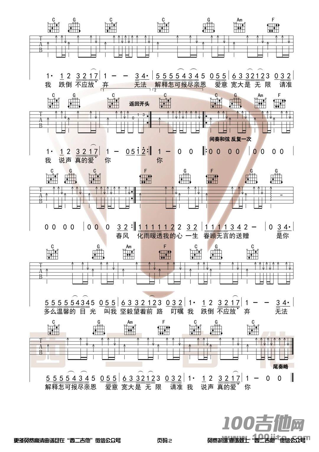 《Beyond《真的爱你吉他谱》(C调)》内容来自于互联网,不能保证内容的准确性与完整性,仅供学习交流欣赏,请勿用于其它用途,内容版权归原作者及来源网站所有,如有侵犯到您的权益请来信告知,我们将及时删除。