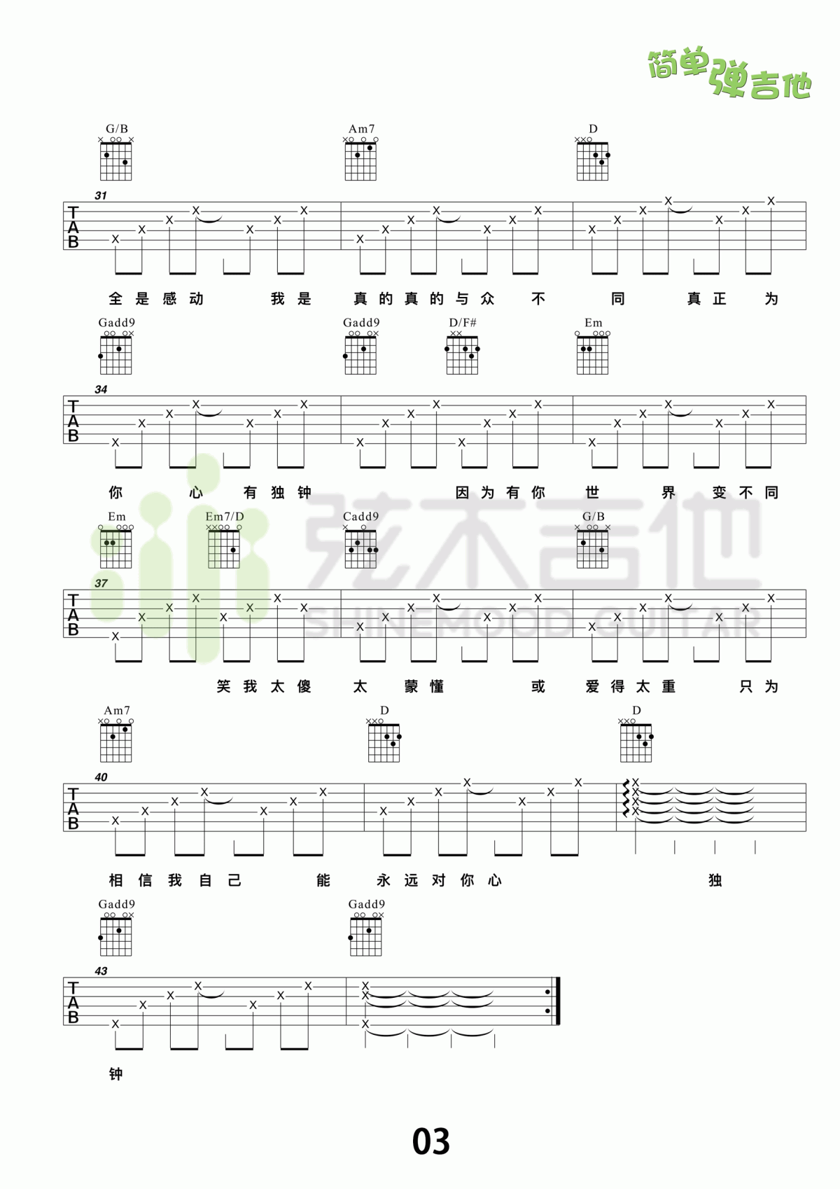 陈晓东《心有独钟吉他谱》(G调)