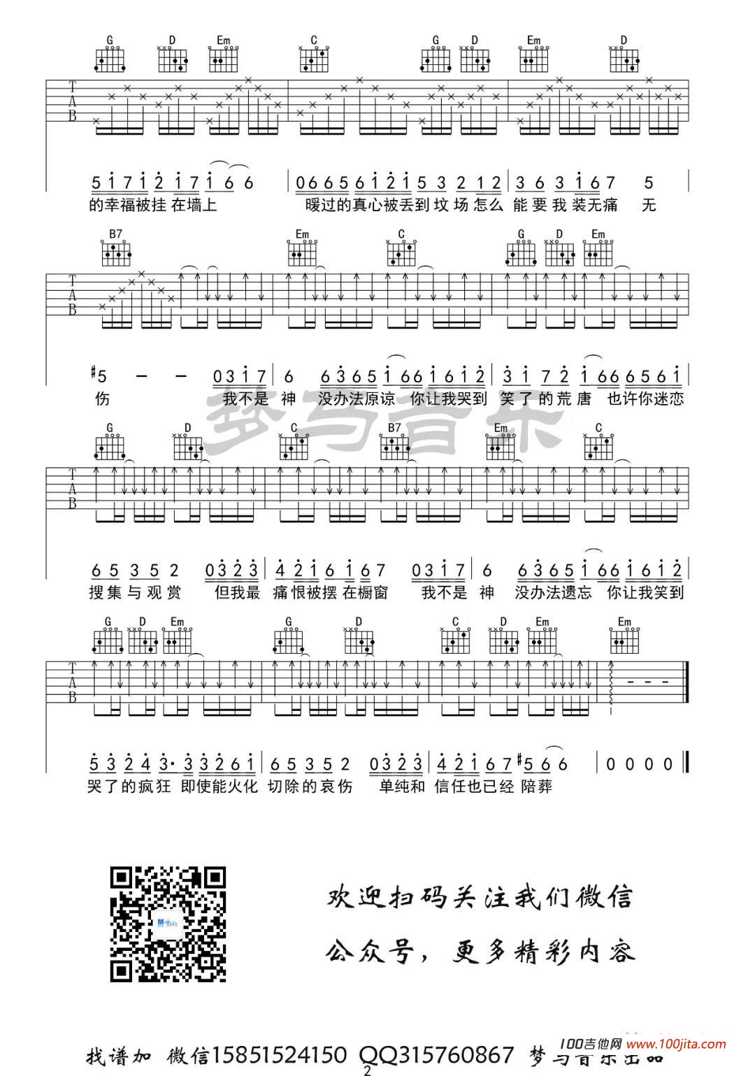 《郁可唯《我不是神吉他谱》(C调)》内容来自于互联网,不能保证内容的准确性与完整性,仅供学习交流欣赏,请勿用于其它用途,内容版权归原作者及来源网站所有,如有侵犯到您的权益请来信告知,我们将及时删除。