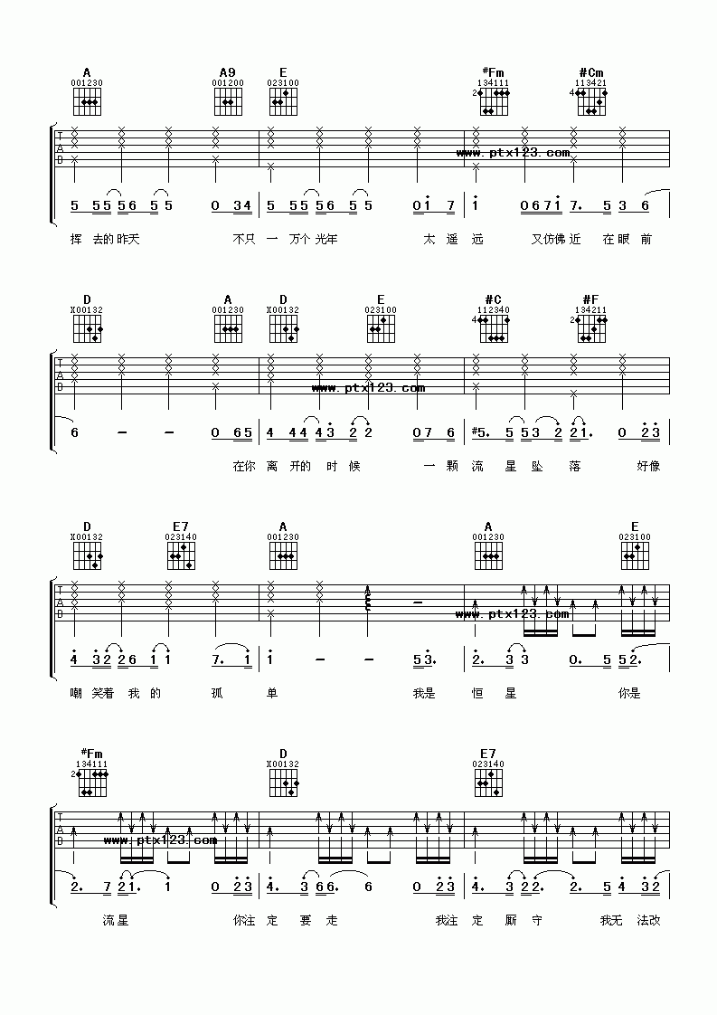 《张杰《恒星流星吉他谱》》内容来自于互联网,不能保证内容的准确性与完整性,仅供学习交流欣赏,请勿用于其它用途,内容版权归原作者及来源网站所有,如有侵犯到您的权益请来信告知,我们将及时删除。