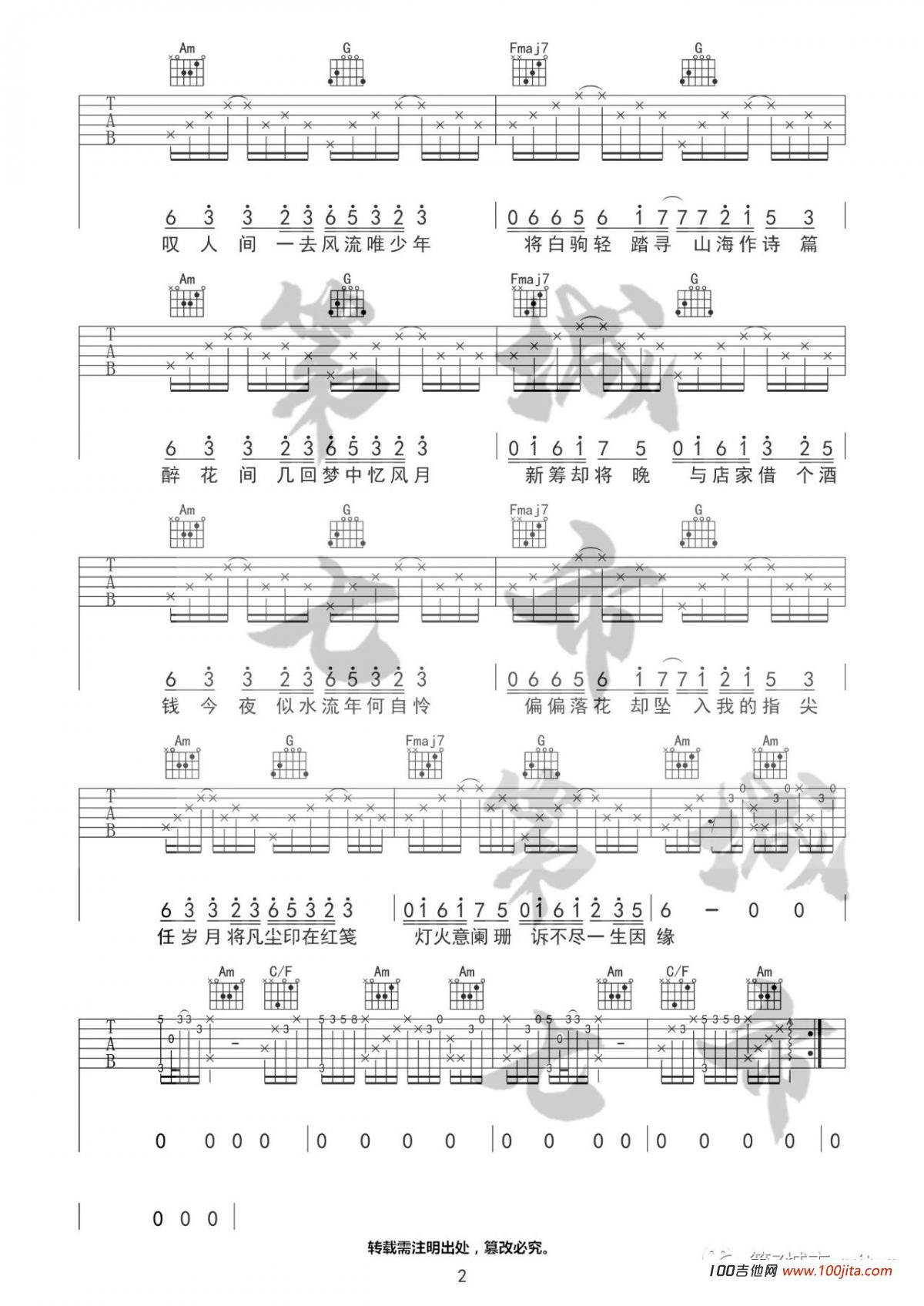 《叶里《人间惊鸿客吉他谱》(C调)》内容来自于互联网,不能保证内容的准确性与完整性,仅供学习交流欣赏,请勿用于其它用途,内容版权归原作者及来源网站所有,如有侵犯到您的权益请来信告知,我们将及时删除。