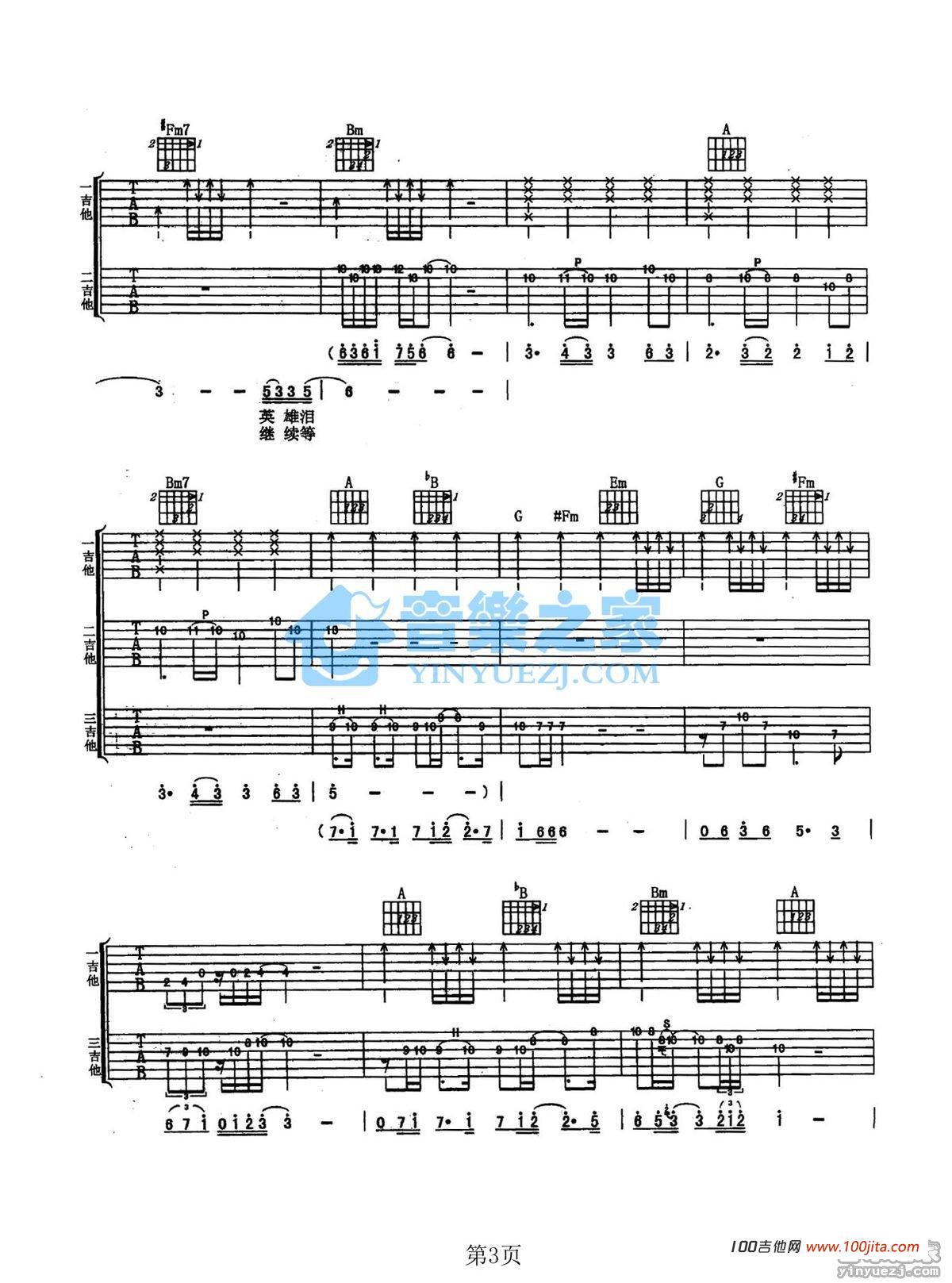 《王杰《英雄泪吉他谱》》内容来自于互联网,不能保证内容的准确性与完整性,仅供学习交流欣赏,请勿用于其它用途,内容版权归原作者及来源网站所有,如有侵犯到您的权益请来信告知,我们将及时删除。