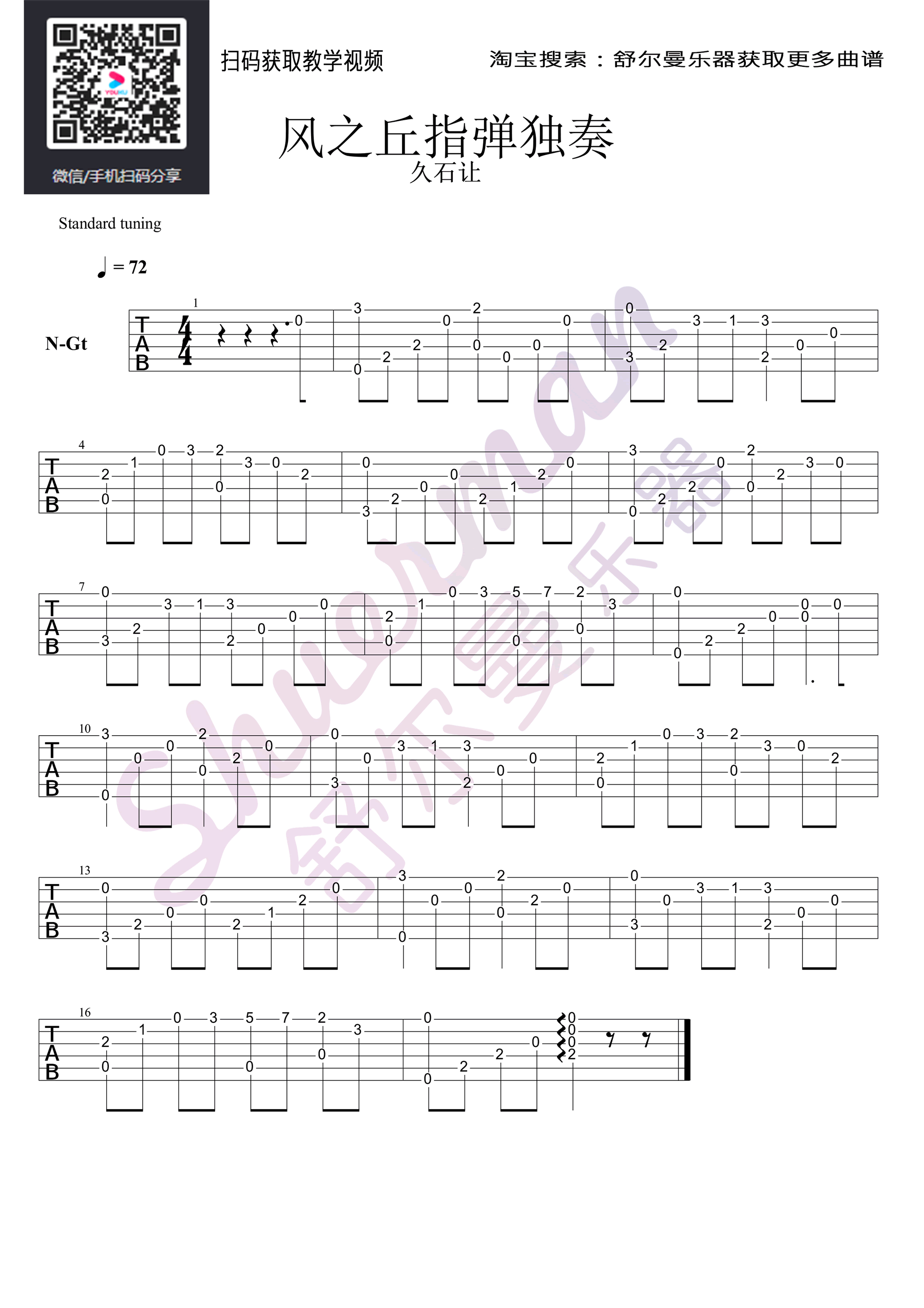 《宫崎骏《风之丘指弹谱吉他谱》》内容来自于互联网,不能保证内容的准确性与完整性,仅供学习交流欣赏,请勿用于其它用途,内容版权归原作者及来源网站所有,如有侵犯到您的权益请来信告知,我们将及时删除。