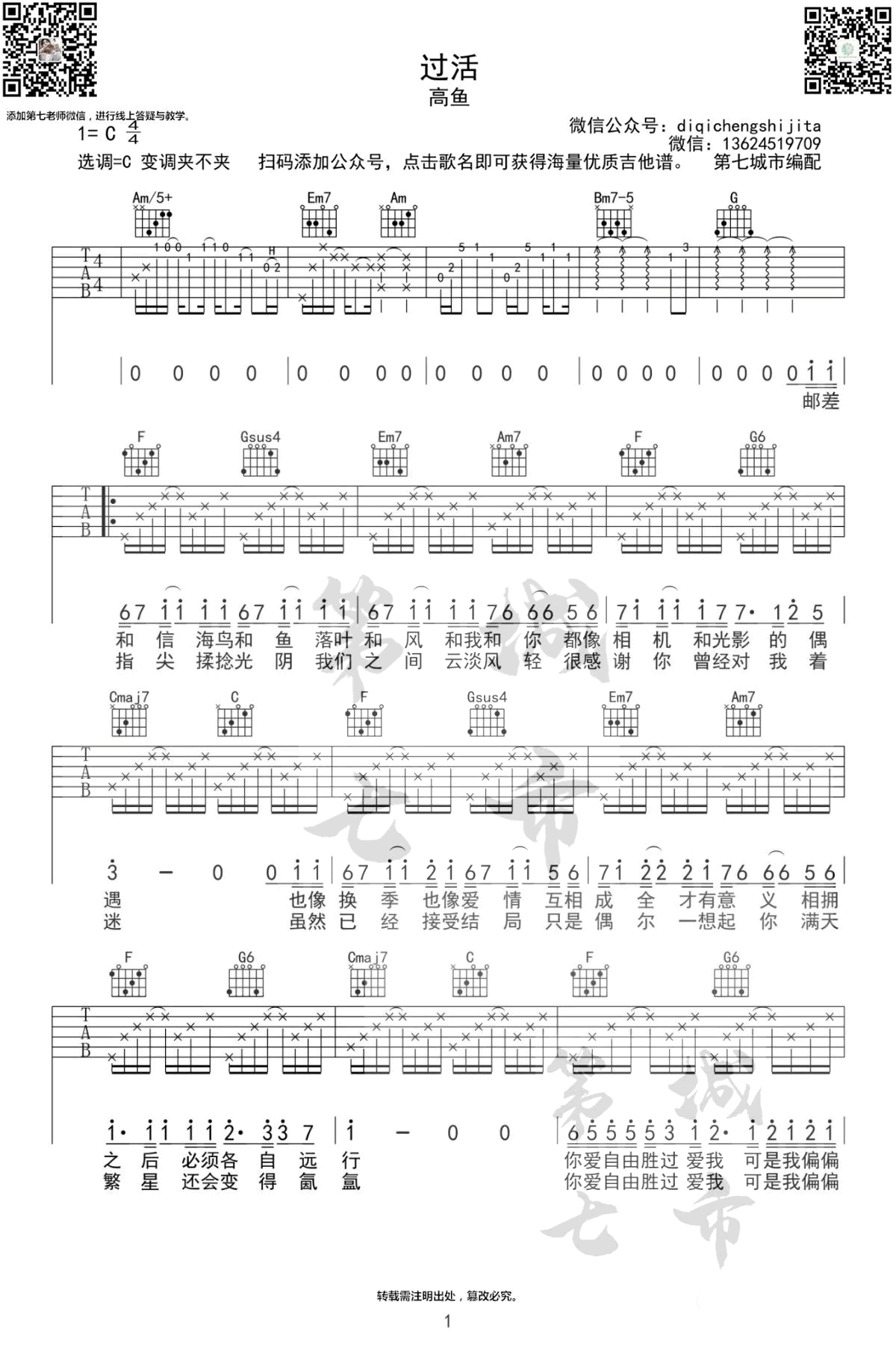 《高鱼《过活吉他谱》》内容来自于互联网,不能保证内容的准确性与完整性,仅供学习交流欣赏,请勿用于其它用途,内容版权归原作者及来源网站所有,如有侵犯到您的权益请来信告知,我们将及时删除。