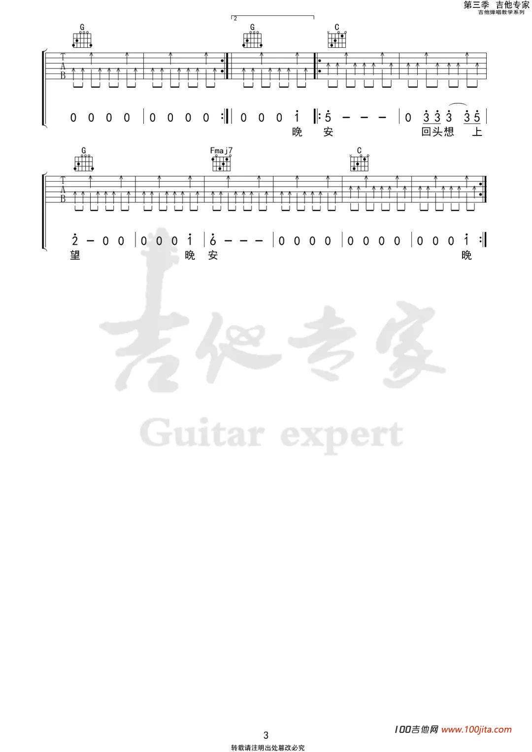《麻园诗人《晚安吉他谱》(C调)》内容来自于互联网,不能保证内容的准确性与完整性,仅供学习交流欣赏,请勿用于其它用途,内容版权归原作者及来源网站所有,如有侵犯到您的权益请来信告知,我们将及时删除。