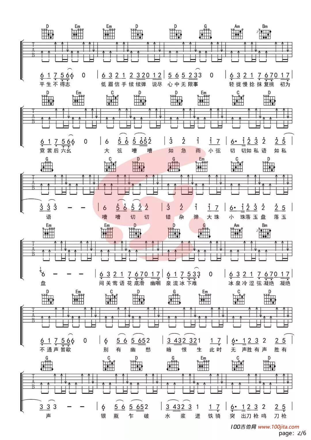 《琵琶行》吉他谱是根据奇然和沈谧仁的演唱编制的,歌曲原调A掉,采用G调指法,夹二品变调夹。这首古风歌曲深受喜爱,歌词改编自白居易的长篇叙事诗,唱出了其中的感伤和心绪,仿佛将人带入故事中。通过这完整的六线谱,六张高清图片展现出这首曲目的精妙之处。欣赏这琵琶行的旋