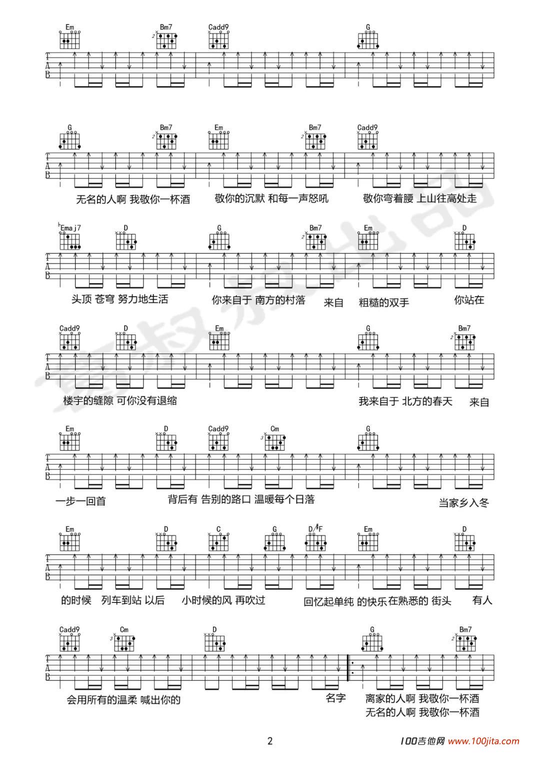 《毛不易《无名的人吉他谱》(C调)》内容来自于互联网,不能保证内容的准确性与完整性,仅供学习交流欣赏,请勿用于其它用途,内容版权归原作者及来源网站所有,如有侵犯到您的权益请来信告知,我们将及时删除。