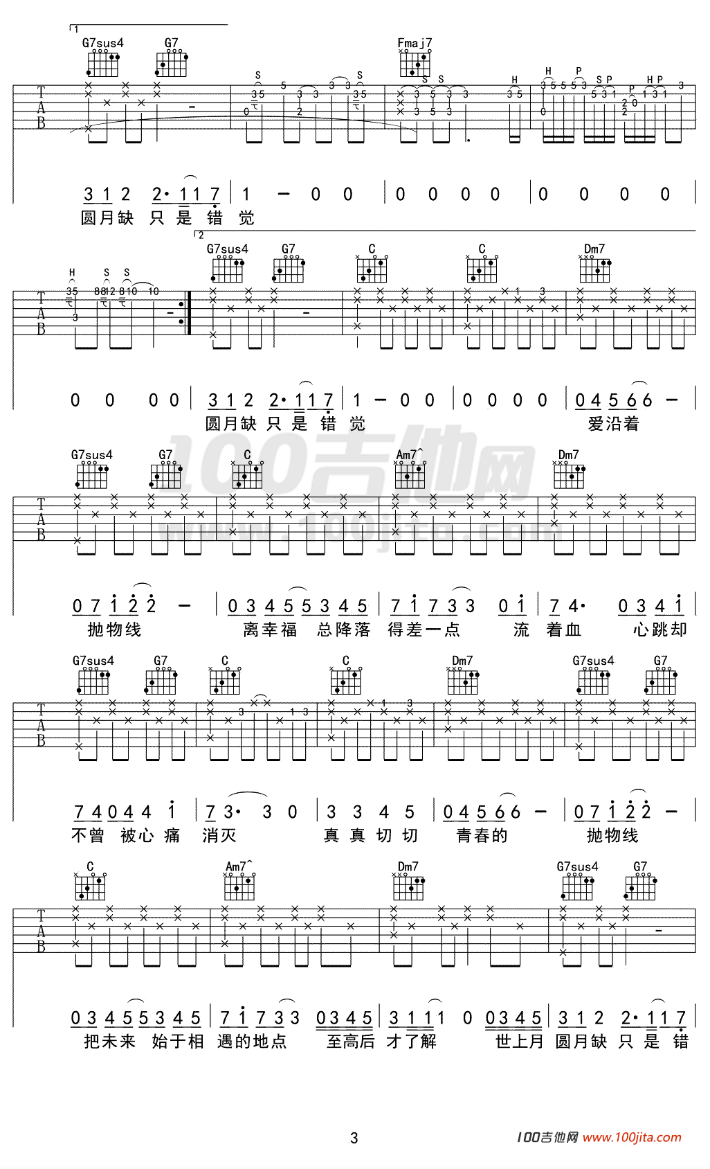 《蔡健雅《抛物线吉他谱》》内容来自于互联网,不能保证内容的准确性与完整性,仅供学习交流欣赏,请勿用于其它用途,内容版权归原作者及来源网站所有,如有侵犯到您的权益请来信告知,我们将及时删除。