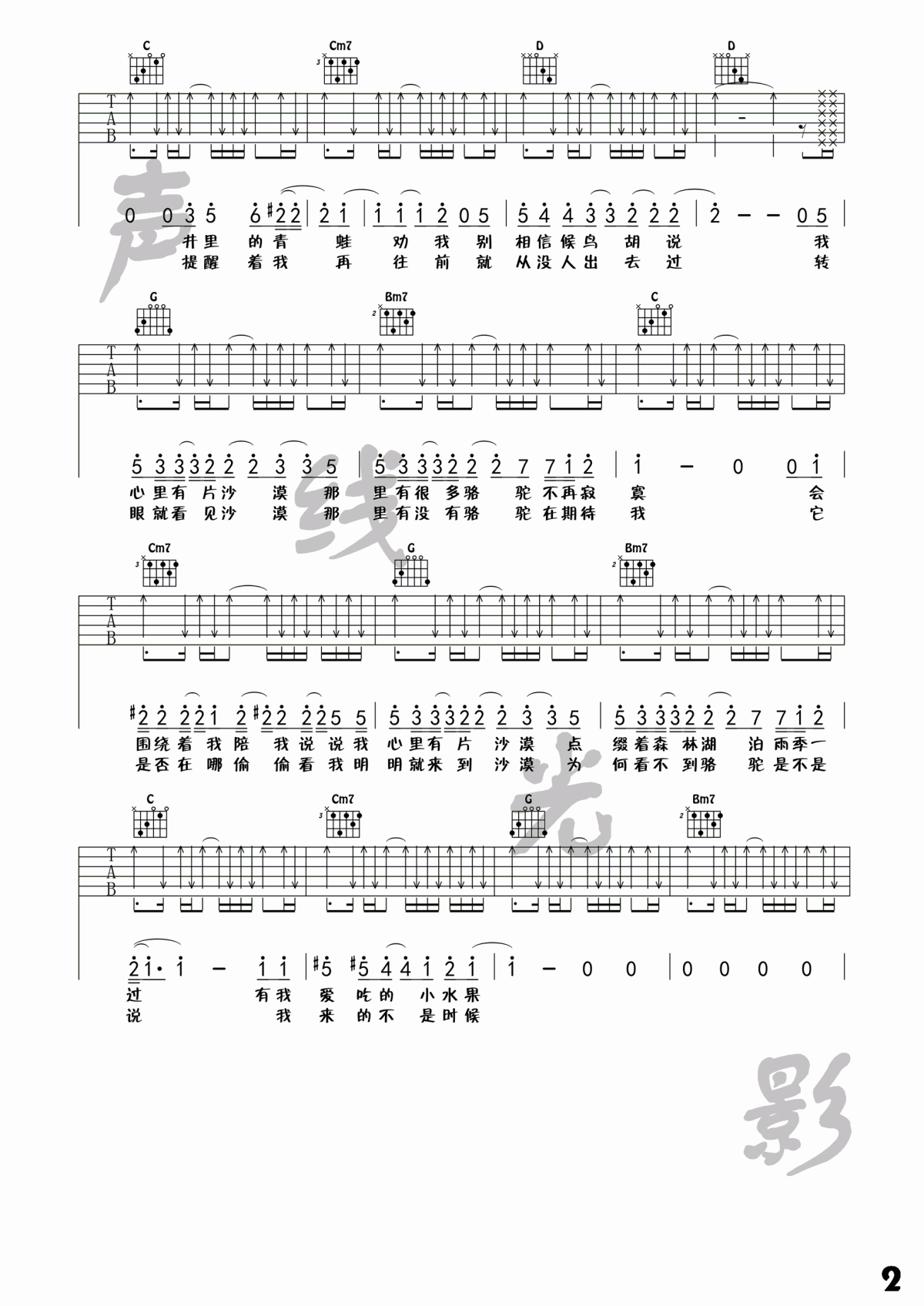 《薛之谦《骆驼吉他谱》(G调)》内容来自于互联网,不能保证内容的准确性与完整性,仅供学习交流欣赏,请勿用于其它用途,内容版权归原作者及来源网站所有,如有侵犯到您的权益请来信告知,我们将及时删除。