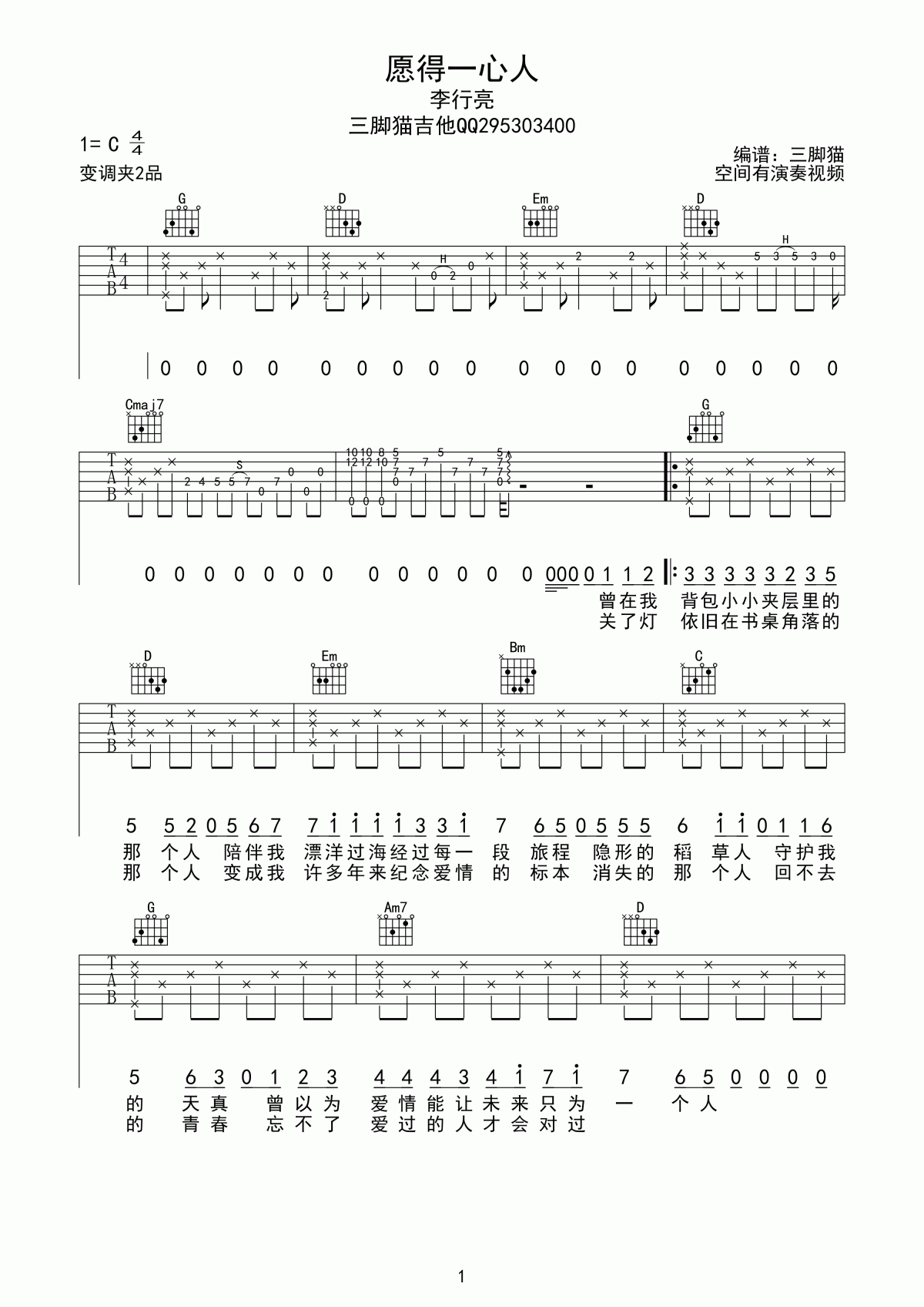 《李行亮《李行亮 愿得一人心吉他谱》(C调)》内容来自于互联网,不能保证内容的准确性与完整性,仅供学习交流欣赏,请勿用于其它用途,内容版权归原作者及来源网站所有,如有侵犯到您的权益请来信告知,我们将及时删除。
