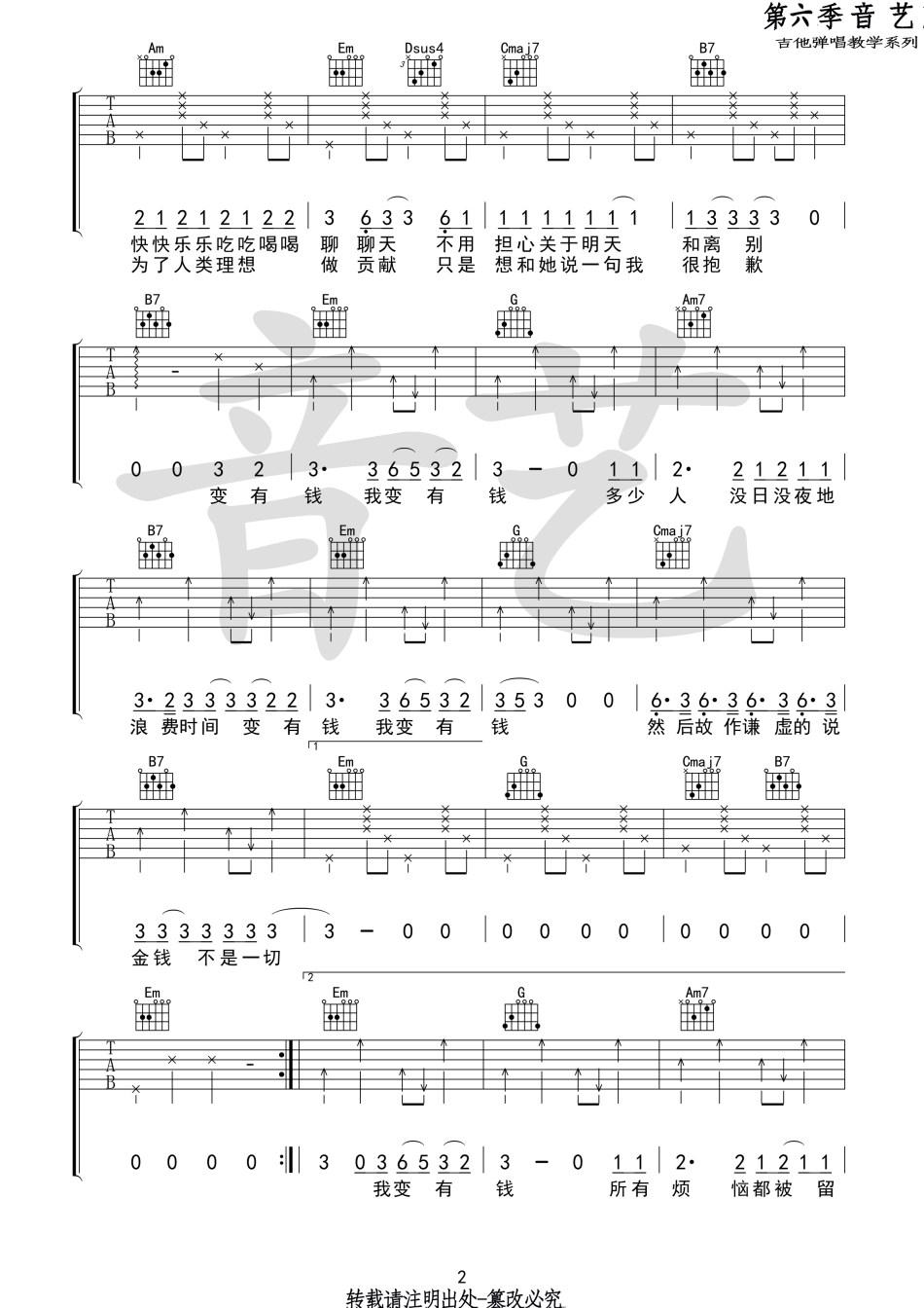 这是毛不易演唱的原创歌曲,以吉他谱形式呈现。歌曲名为《如果有一天我变得很有钱》是明日之子的商业巨星毛不易的创作。和弦编曲和和弦音乐交织,勾勒出一幅充满梦想与财富的音乐画卷。在歌词中,毛不易表达了对未来富有的向往和期许。这首歌曲通过吉他谱的形式,将情感与旋律巧妙