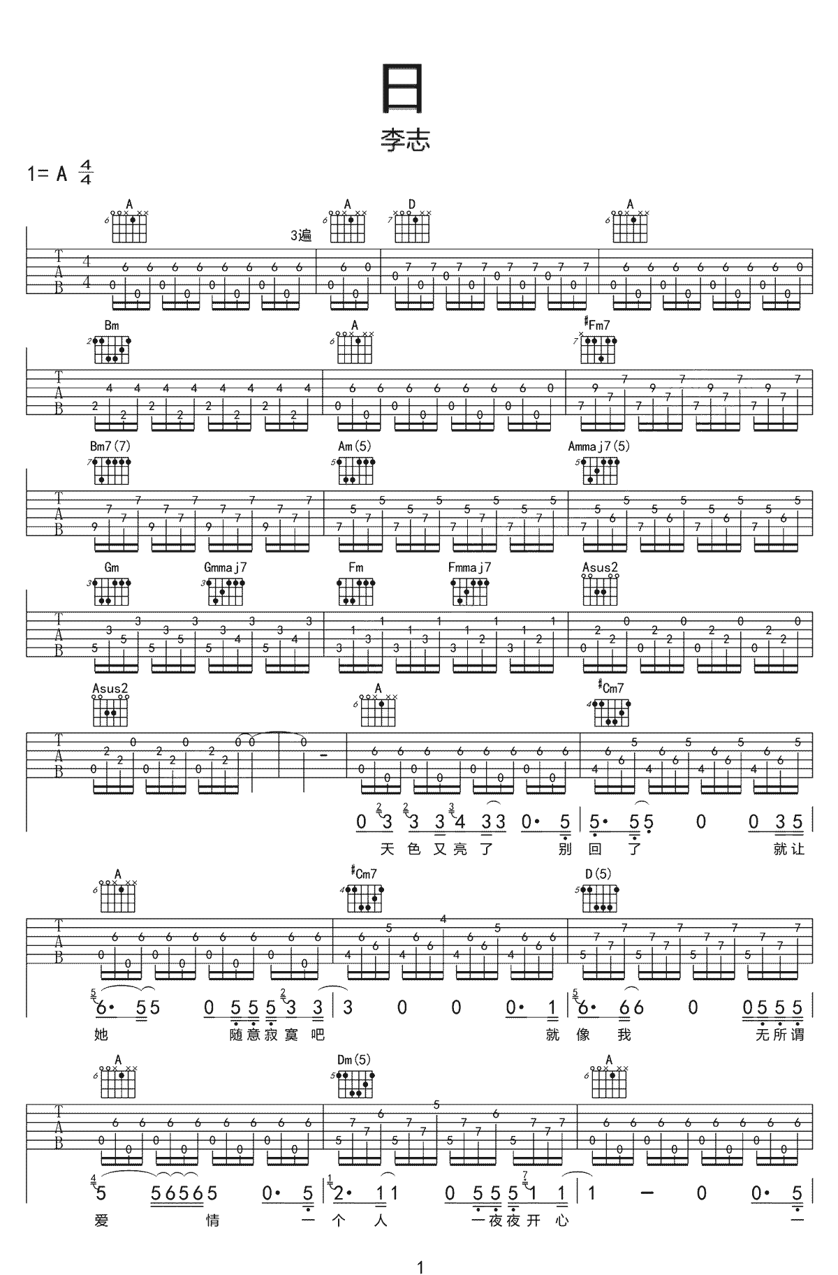 《李志创作并《日吉他谱》(A调)》内容来自于互联网,不能保证内容的准确性与完整性,仅供学习交流欣赏,请勿用于其它用途,内容版权归原作者及来源网站所有,如有侵犯到您的权益请来信告知,我们将及时删除。
