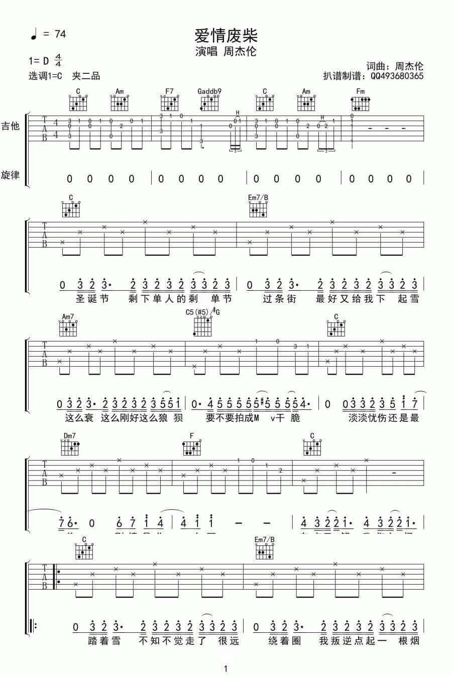 《周杰伦《爱情废柴吉他谱》(C调)》内容来自于互联网,不能保证内容的准确性与完整性,仅供学习交流欣赏,请勿用于其它用途,内容版权归原作者及来源网站所有,如有侵犯到您的权益请来信告知,我们将及时删除。