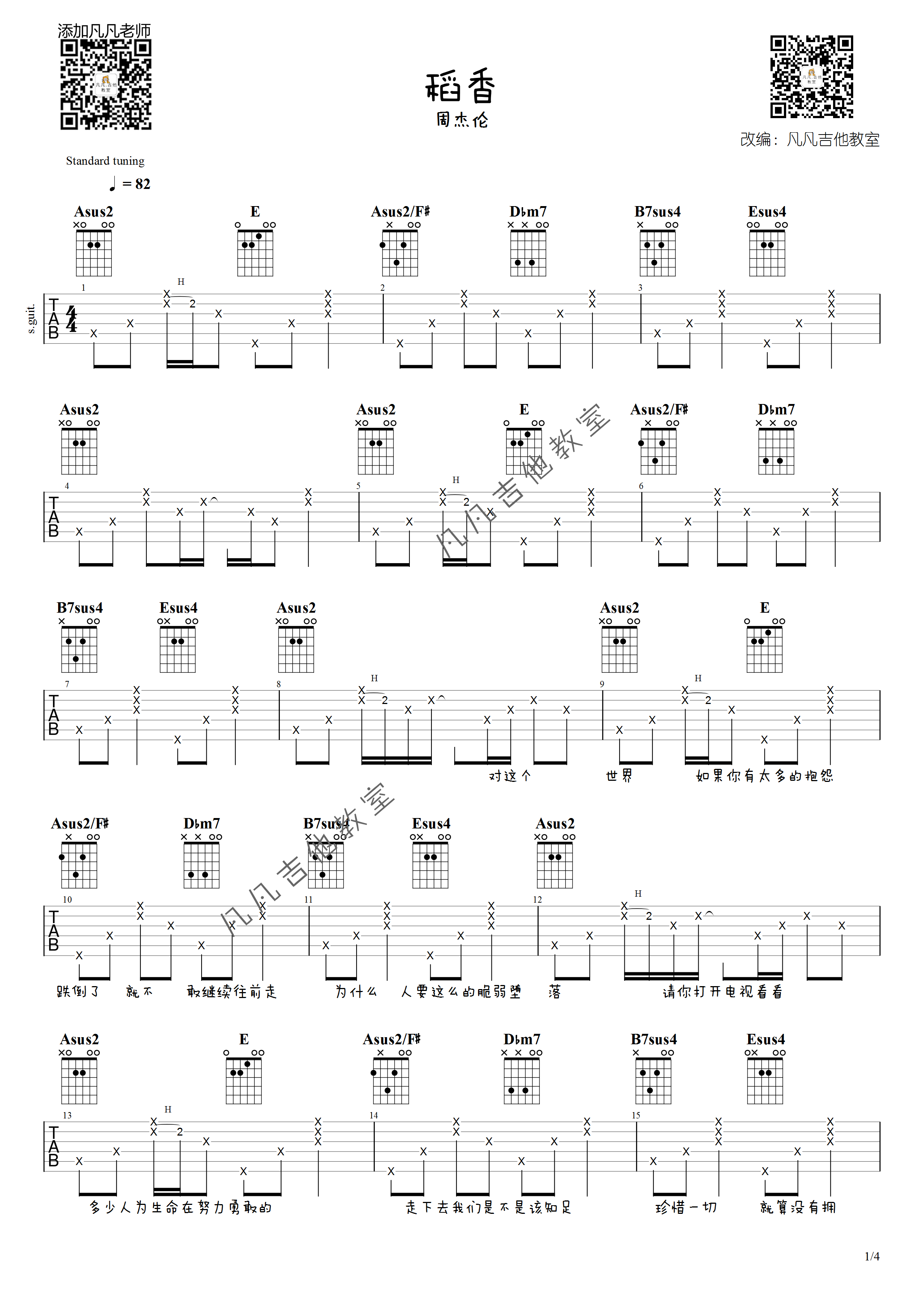 《稻香》吉他弹唱谱由凡凡吉他教室精心完成。这首周杰伦的歌曲,以他小时候的生活经历为灵感,描绘了童年时在乡下的欢乐时光。歌词充满玩趣,带领听众回忆起那些打赤脚在田里奔跑、偷摘水果的童趣。通过音符间的吉他演奏,仿佛能感受到那个纯真年代的欢笑声和天真快乐。周杰伦以他