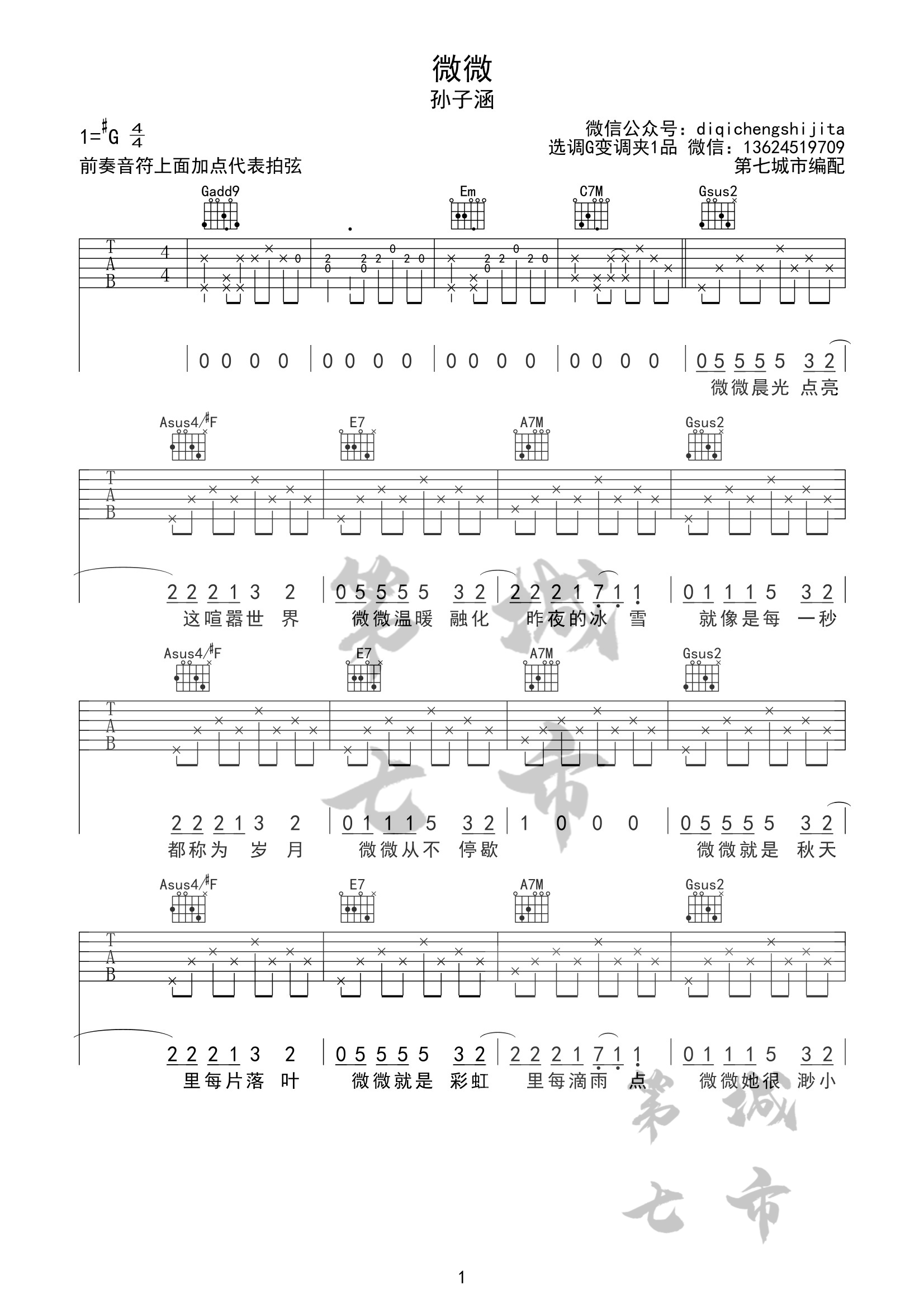 《《微微吉他谱》(G调)》内容来自于互联网,不能保证内容的准确性与完整性,仅供学习交流欣赏,请勿用于其它用途,内容版权归原作者及来源网站所有,如有侵犯到您的权益请来信告知,我们将及时删除。