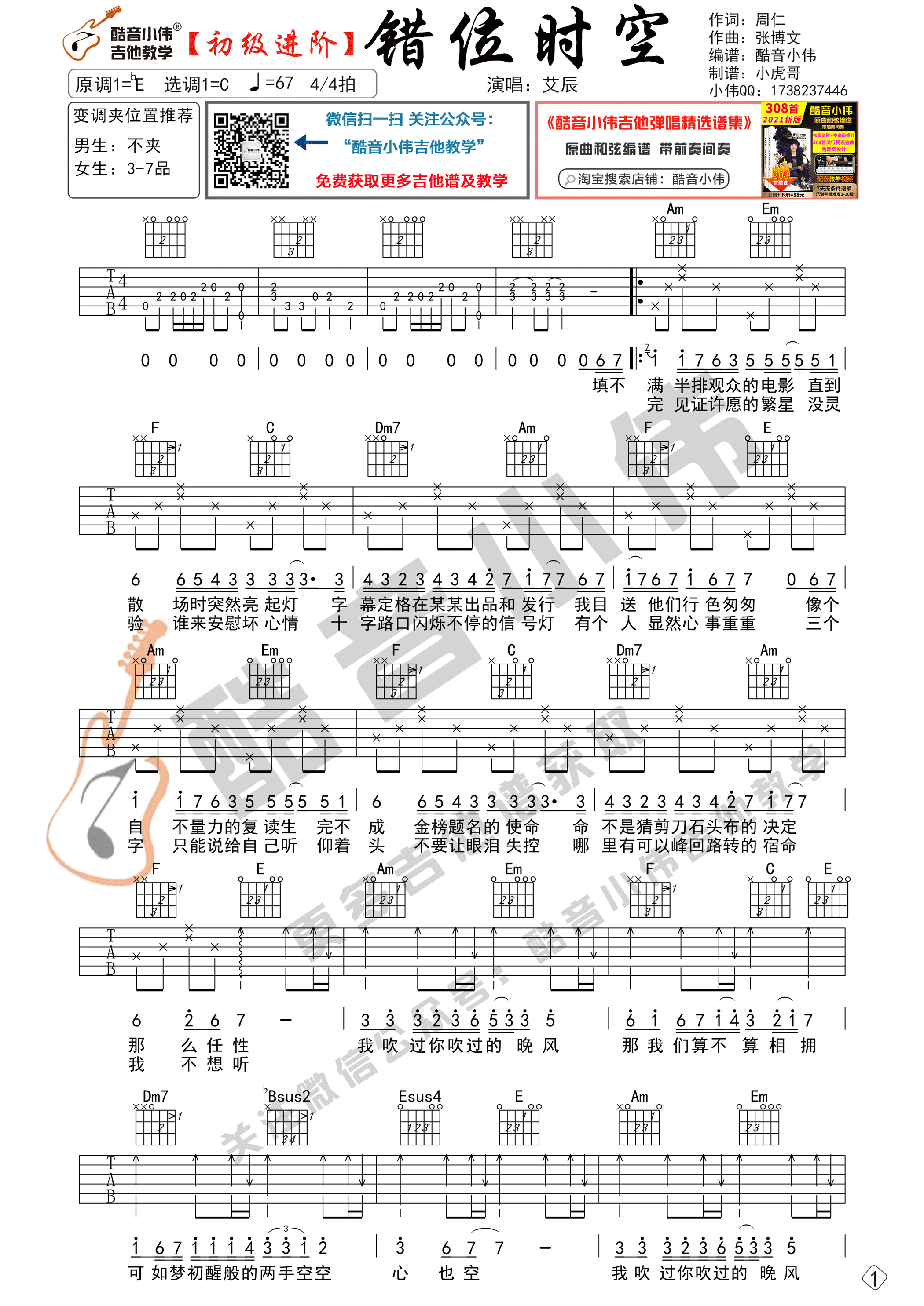 《艾辰《错位时空吉他谱》(C调)》内容来自于互联网,不能保证内容的准确性与完整性,仅供学习交流欣赏,请勿用于其它用途,内容版权归原作者及来源网站所有,如有侵犯到您的权益请来信告知,我们将及时删除。