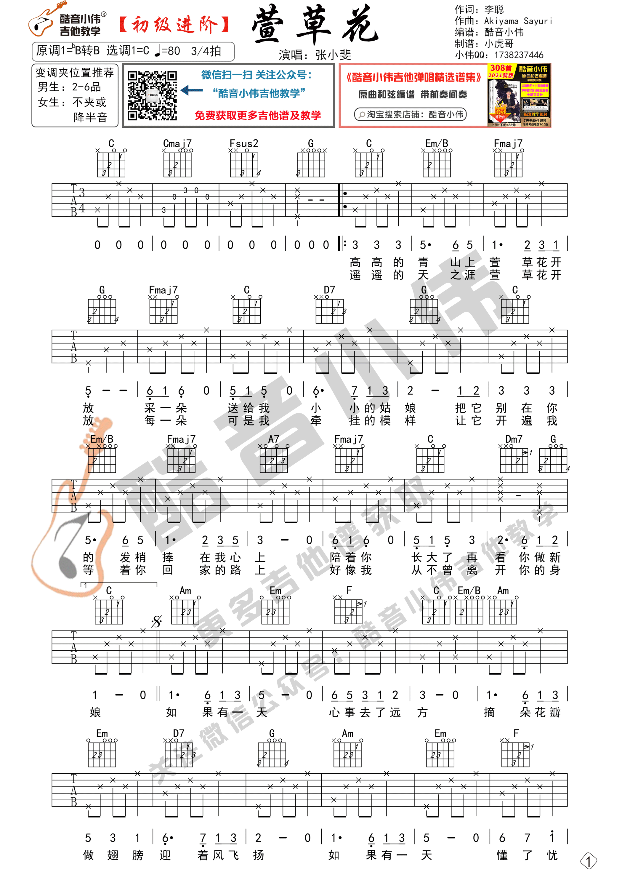 《张小斐《萱草花吉他谱》(C调)》内容来自于互联网,不能保证内容的准确性与完整性,仅供学习交流欣赏,请勿用于其它用途,内容版权归原作者及来源网站所有,如有侵犯到您的权益请来信告知,我们将及时删除。