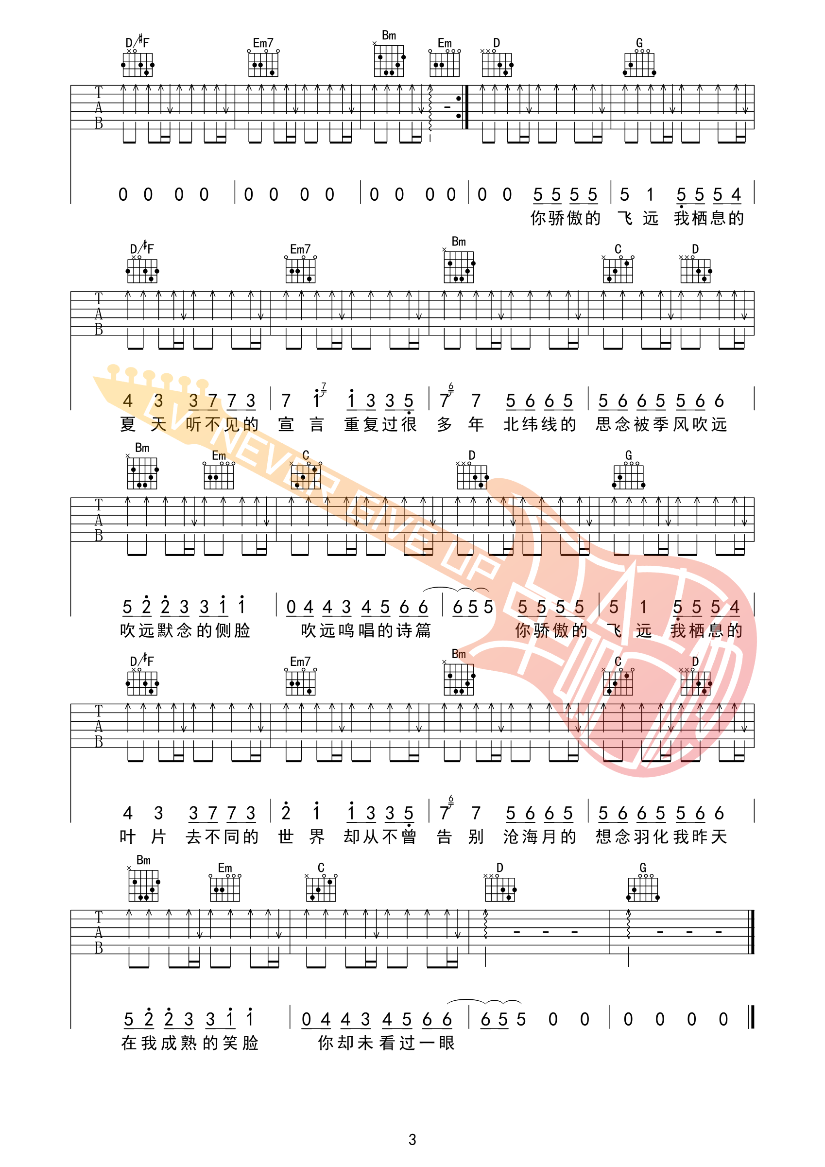 《任然《飞鸟和蝉吉他谱》(G调)》内容来自于互联网,不能保证内容的准确性与完整性,仅供学习交流欣赏,请勿用于其它用途,内容版权归原作者及来源网站所有,如有侵犯到您的权益请来信告知,我们将及时删除。