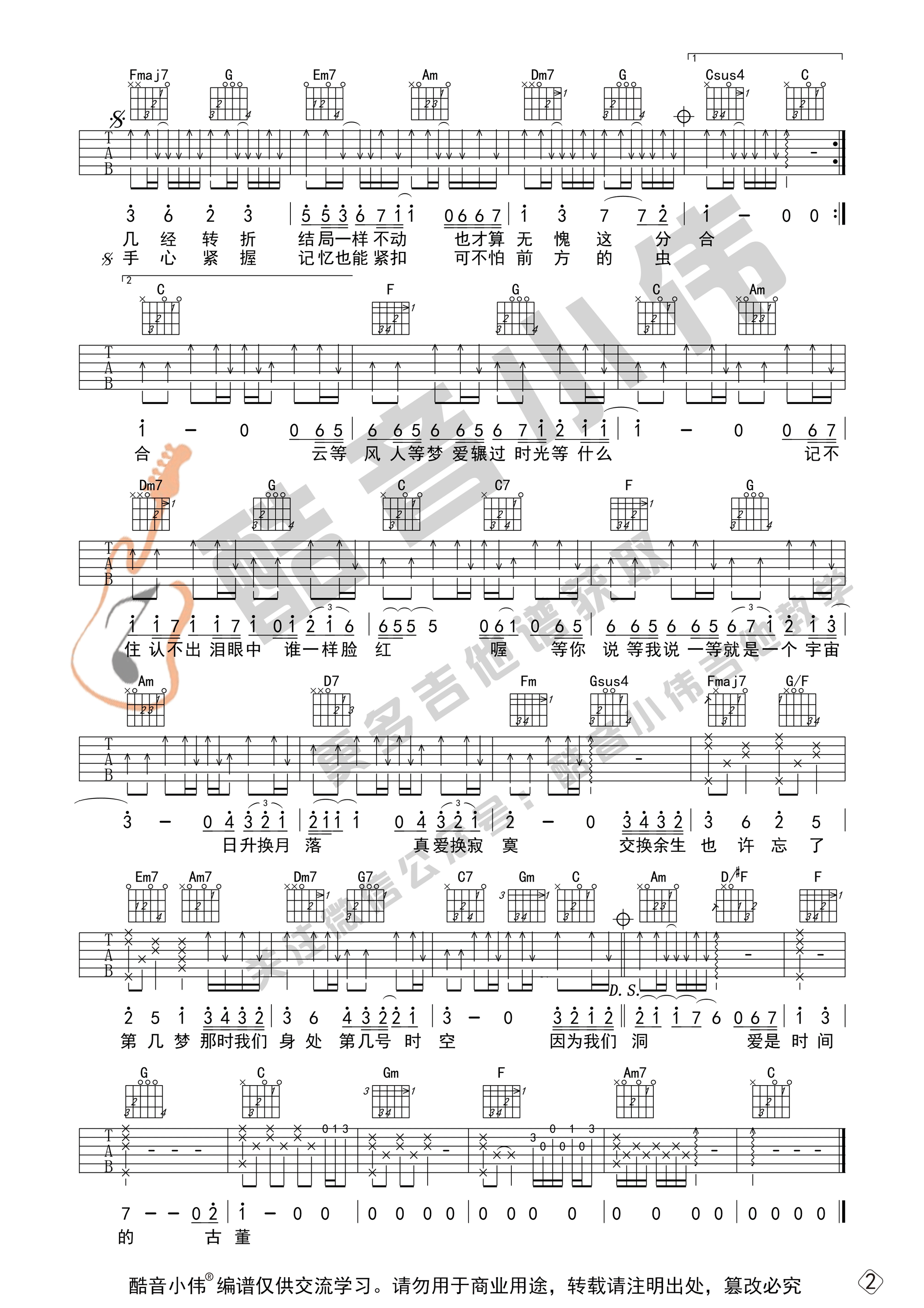 《林俊杰《交换余生吉他谱》(C调)》内容来自于互联网,不能保证内容的准确性与完整性,仅供学习交流欣赏,请勿用于其它用途,内容版权归原作者及来源网站所有,如有侵犯到您的权益请来信告知,我们将及时删除。
