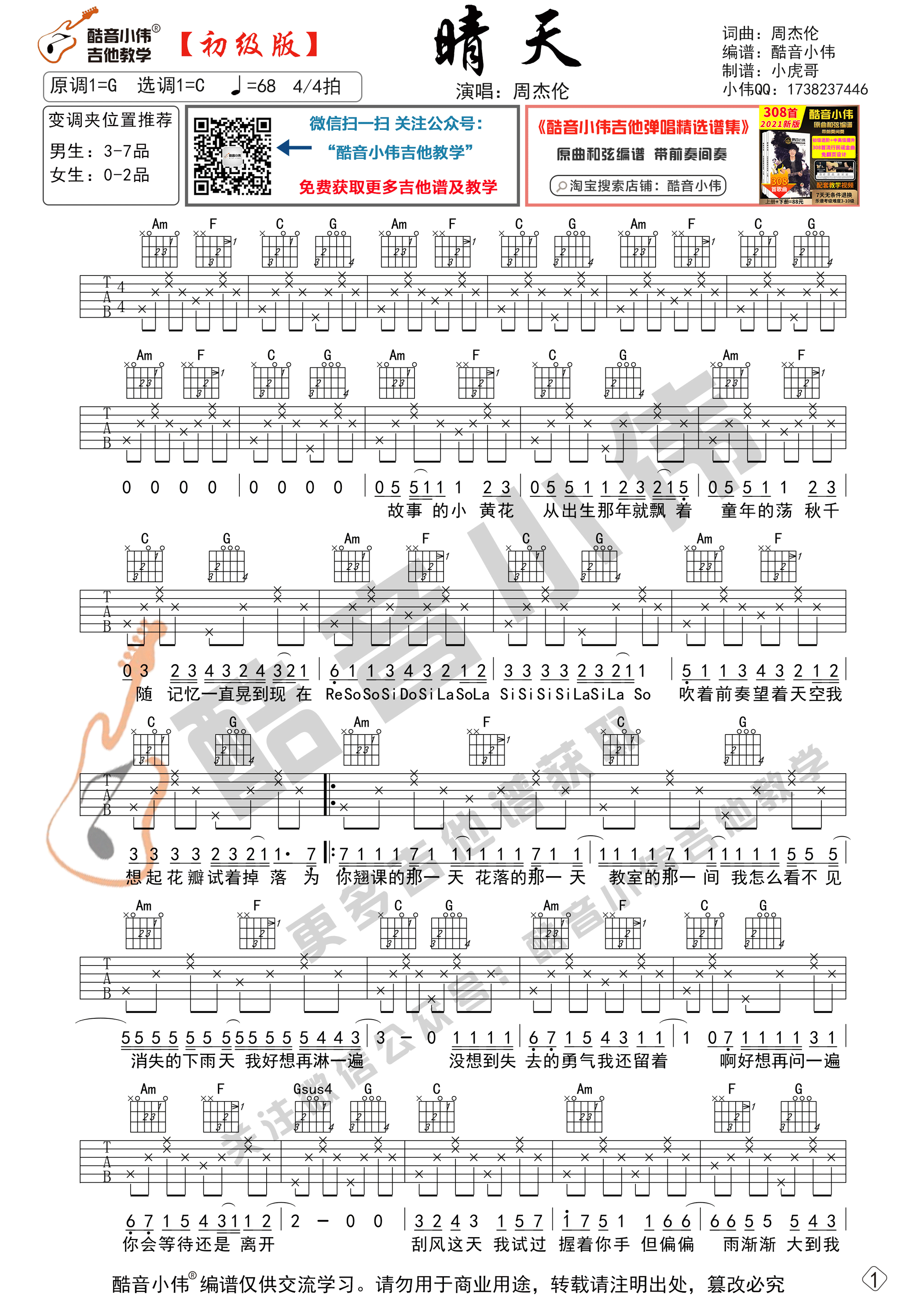 《周杰伦《晴天吉他谱》(C调)》内容来自于互联网,不能保证内容的准确性与完整性,仅供学习交流欣赏,请勿用于其它用途,内容版权归原作者及来源网站所有,如有侵犯到您的权益请来信告知,我们将及时删除。