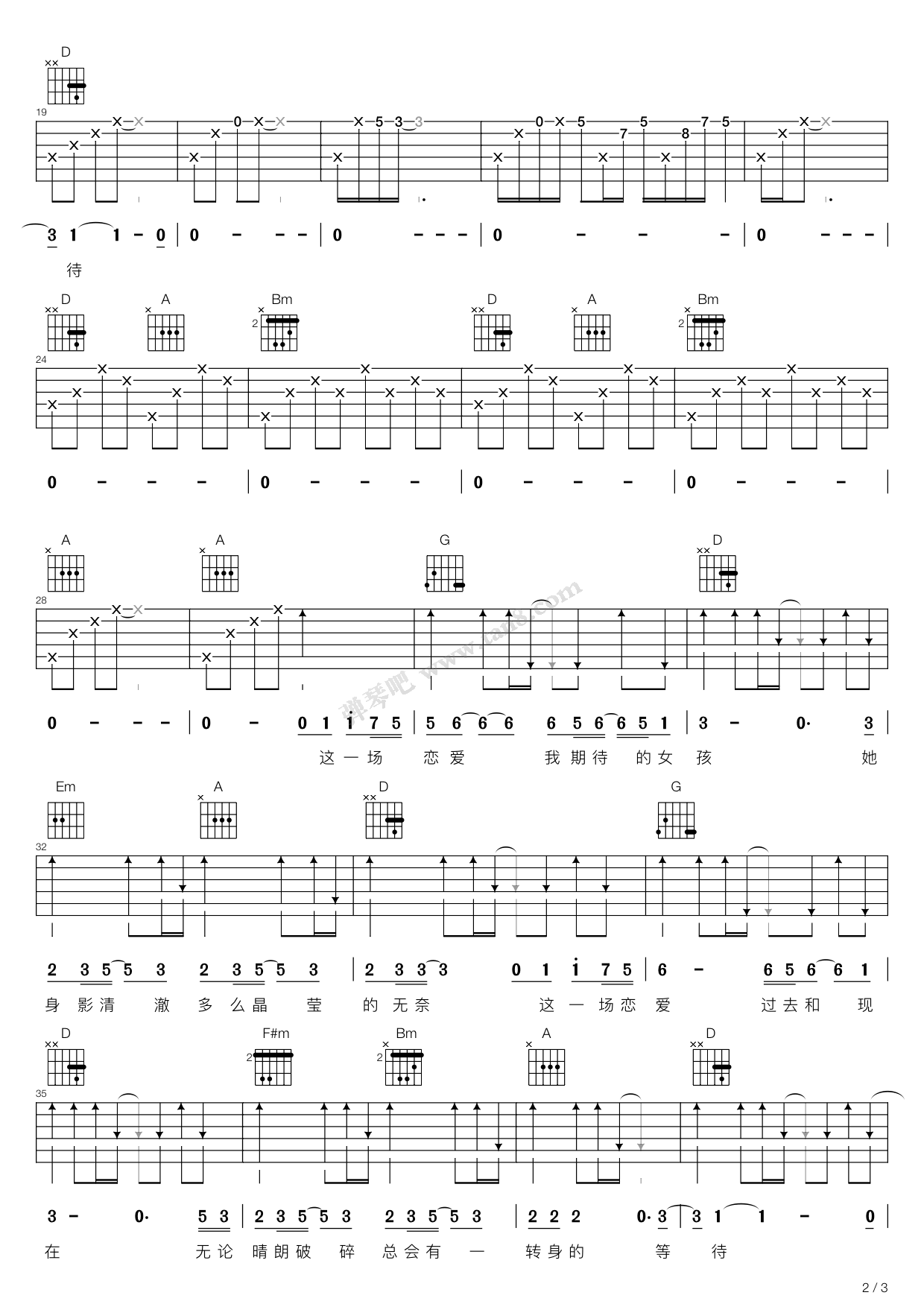 《杨宗纬《一场恋爱吉他谱》(D调)》内容来自于互联网,不能保证内容的准确性与完整性,仅供学习交流欣赏,请勿用于其它用途,内容版权归原作者及来源网站所有,如有侵犯到您的权益请来信告知,我们将及时删除。