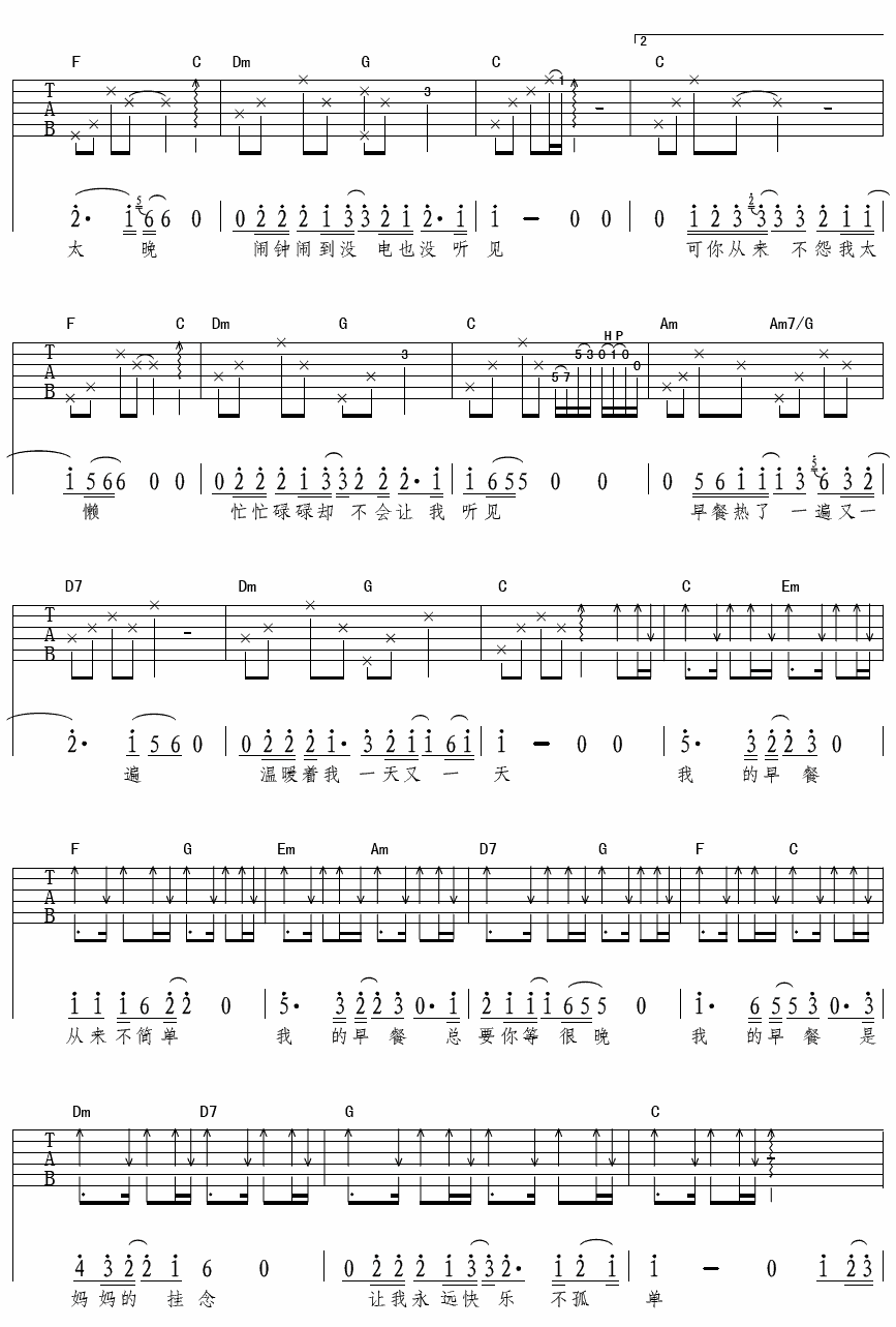 《《早餐吉他谱》(C调)》内容来自于互联网,不能保证内容的准确性与完整性,仅供学习交流欣赏,请勿用于其它用途,内容版权归原作者及来源网站所有,如有侵犯到您的权益请来信告知,我们将及时删除。