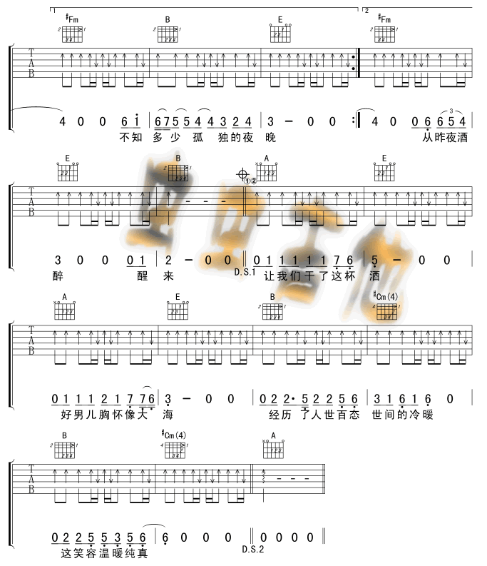 烟把儿《纸短情长 原版吉他谱》