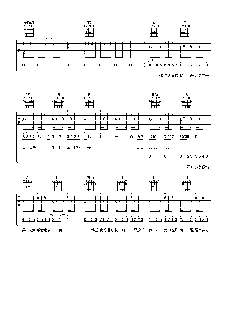 《王力宏《好心分手吉他谱》(E调)》内容来自于互联网,不能保证内容的准确性与完整性,仅供学习交流欣赏,请勿用于其它用途,内容版权归原作者及来源网站所有,如有侵犯到您的权益请来信告知,我们将及时删除。